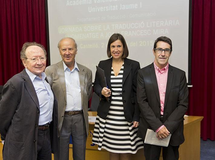 Con motivo del Día Internacional de la Traducción, la Acadèmia Valenciana de la Llengua (AVL) y la Facultad de Ciencias Humanas y Sociales (FCHS) de la Universitat Jaume I han celebrado una Jornada sobre la Traducción, en la que se ha homenajeado la figura del escritor, antropólogo y sociólogo Joan Francesc Mira, por sus relevantes traducciones de textos clásicos, medievales y modernos, como representación de la vigencia de la traducción literaria contemporánea. El acto de inauguración ha sido a cargo de Rosa Agost, decana de la FCHS; el presidente de la AVL, Ramón Ferrer, y el catedrático de Filología Catalana de la UJI, Lluís Meseguer.
