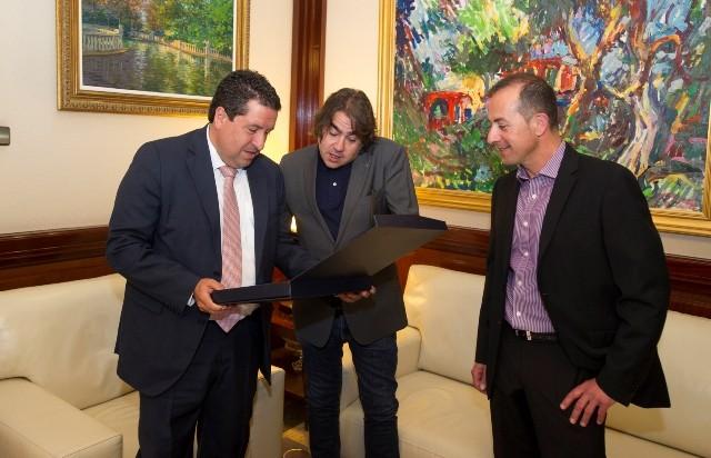 El presidente de la Diputación de Castellón, Javier Moliner, se ha reunido con los representantes del Colegio de Agentes Comerciales, que le han hecho entrega de una placa conmemorativa con motivo de su 90º aniversario por la labor de la institución a favor del colectivo.