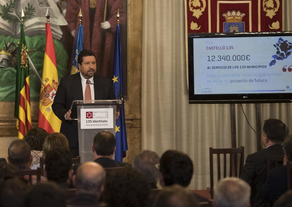 A estos ingresos de dinero por 45 millones de euros hay que sumar los más de 13 millones de euros que el la institución invertirá en el Plan Castellón 135 este año para pagar tanto obras como servicios que le han solicitado los 135 ayuntamientos de la provincia de Castellón y que se pondrán en marcha de inmediato. Esta es el mayor plan inversor asumido jamás en la provincia de Castellón para todos los pueblos.