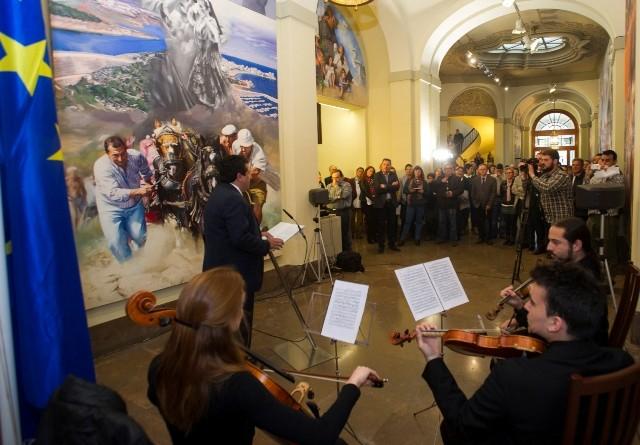 Decenas de personas han presenciado la lectura del manifiesto, que finalmente se ha desarrollado en el hall del Palacio Provincial y no en la Plaza Las Aulas como estaba previsto debido a la lluvia. Representantes de distintos partidos políticos, de la Universitat Jaume I, así como autoridades como el subdelegado del Gobierno en funciones, David Barelles, han participado en este acto institucional de conmemoración de los valores de Europa que ha concluido con la interpretación del Himno de Europa.