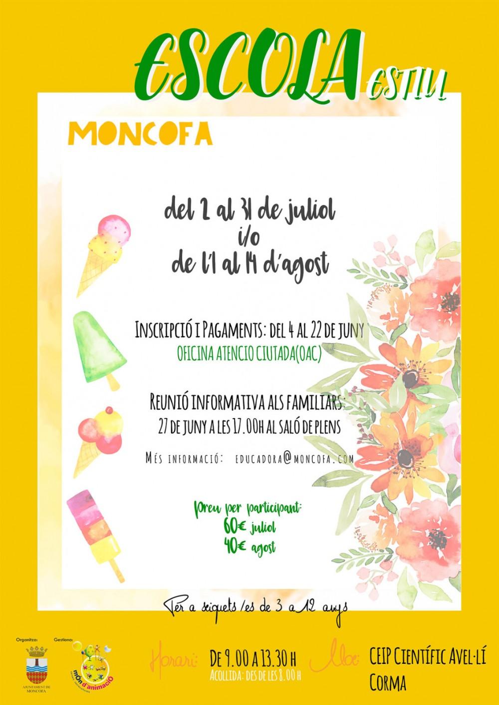 La población de Moncofa no solo disfrutara de la escuela de verano en el mes de julio si no que ampliará la escuela de verano con la primera quincena de agosto también.