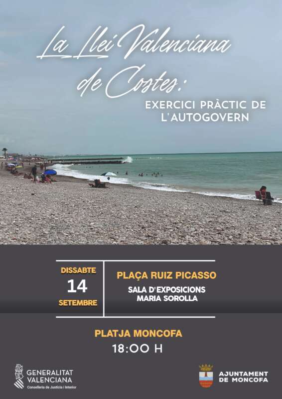 El Ayuntamiento de Moncofa organizará este sábado la primera jornada sobre la ley valenciana de costas. Será en la Sala de Exposiciones María Sorolla, a las 18 horas, bajo el título ‘La llei valenciana de costes: exercici pràctic de l’autogovern”’