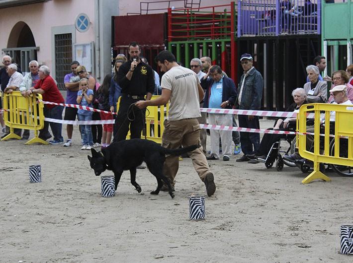 La plaza de la Constitución ha acogido esta mañana una gran exhibición canina en las fiestas de Sant Antoni de Moncofa. Expertos en adiestramiento de perros han mostrado al público asistente la destreza de los animales que han realizado diversas pruebas. Los más pequeños han disfrutado de la fiesta de disfraces que se ha trasladado al polifuncional por la lluvia.