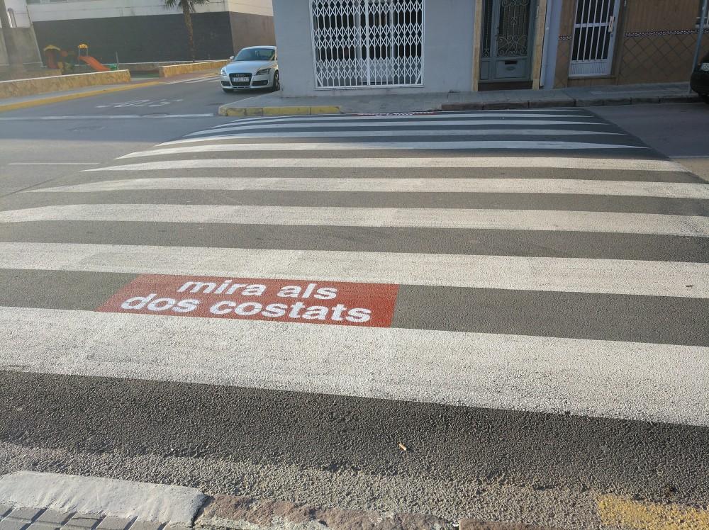 Una altra de les mesures dutes a terme per a millorar la seguretat dels vianants és el reforç de la senyalització vertical i la retolació en l'inici i el final dels passos de vianants de l'entorn del col·legi amb la llegenda “mira als dos costats”.