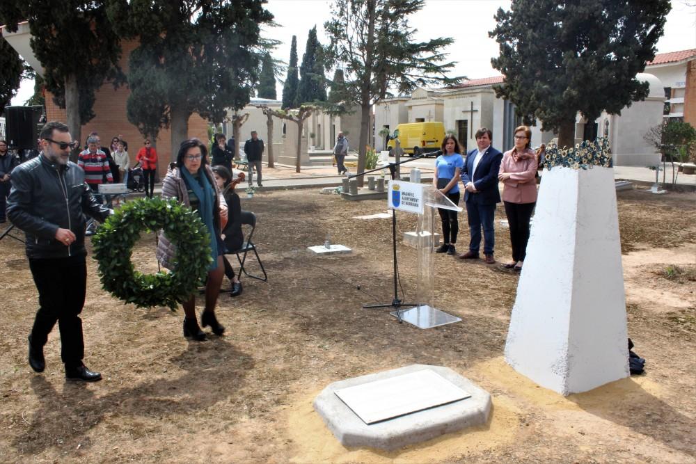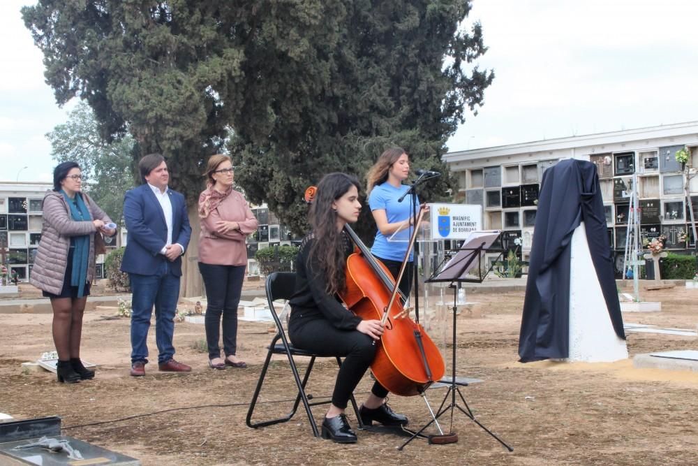 Un monòlit per al record permanent. En finalitzar l'acte, que s'ha tancat amb la interpretació del Cant dels Ocells per part de Nuria Sotomayor, ha sigut el regidor de Cultura, Vicent Granel, qui ha volgut agrair "el treball de tanta i tanta gent com el Grup de Recerca de la Memòria Històrica de Castelló, els col·lectius locals que han treballat en aqueixa recopilació de dades o persones que de forma individual, com Juan Ferrandis, no han volgut que que la història de la nostra ciutat es perda en l'oblit i hagen recuperat la seua memòria i la seua dignitat". I també ho ha volgut fer extensible als artistes Juan Poré i José Ferrer, presents en l'acte, per dissenyar un monòlit "que simbolitza els pilars sobre els quals assentar un societat més democràtica i justa amb el seu passat i la seua història, i que es culmina amb fins a 55 xicotetes peces daurades que representen a eixes 55 víctimes de la repressió franquista el nom de la qual quedarà ja per sempre reflectit en aquest quadrant sis del Cementeri Municipal de Borriana".