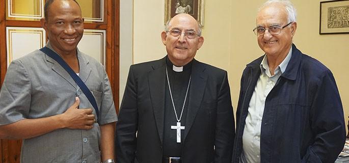 Mons. Casimiro López Llorente ha recibido esta mañana al sacerdote burkinés Noël Baya, párroco de Notre Dame de la Paix, en la población de Safané con la que la Diócesis ha mantenido una vinculación misionera desde el Concilio Vaticano II, y que el año próximo cumple cincuenta años. El abbé Baya ha declarado que para su comunidad “es importante no olvidar los que nos han aportado el Evangelio, y deseamos que sea una renovación de la fe y también de colaboración para que quede constancia de continuidad”.
