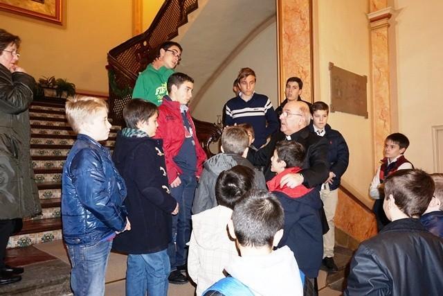 Monseñor Casimiro López Llorente ha hecho de guía del Obispado a los veinte monaguillos de la parroquia de la Asunción de Onda que lo han visitado el segundo día del año. El párroco, D. Domingo Galindo, ha llevado a los jóvenes a visitar el Belén del Provincial, y ha seguido con un encuentro con el Obispo en el palacio episcopal. Mons. López Llorente ha salido a recibirlos y les ha explicado la historia del edificio y los servicios diocesanos que alberga en la actualidad. A continuación han tenido un intercambio espontáneo de experiencias.
