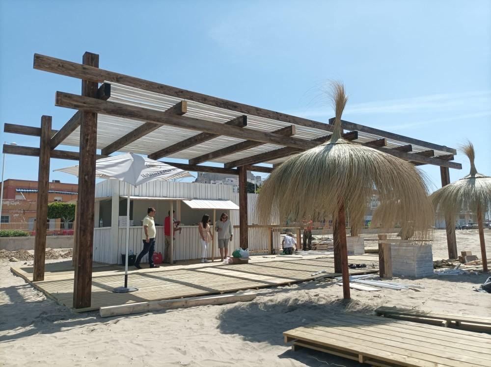 Comienza el montaje del primer chiringuito en la playa de Peñíscola ubicado en la Playa Sur