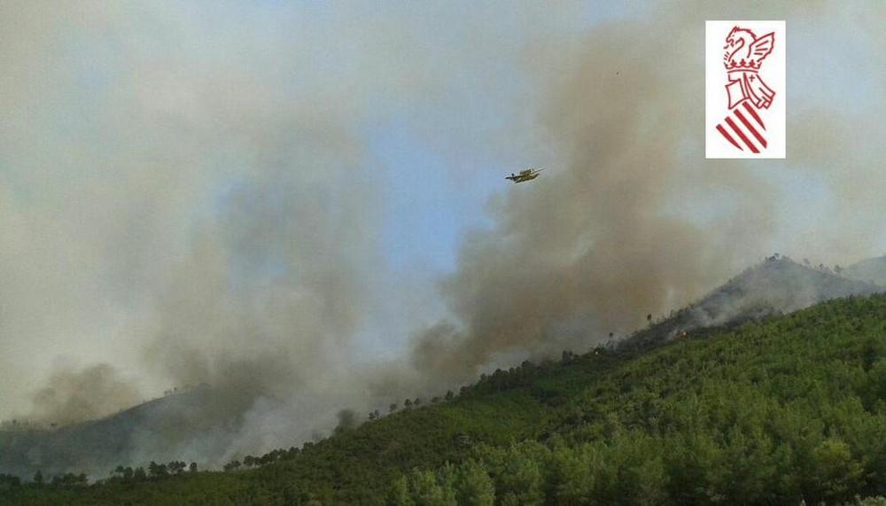 Cabe destacar que las labores de extinción han sido apoyadas por 12 medios aéreos, dada la dificultad para acceder por vía terrestre al fuego, el cual se ha llevado por delante unas 200 hectáreas de monte forestal llegando a la vecina localidad de Caudiel, zona en la cual está controlado. Durante la tarde se han incorporado a las labores de extinción 2 aviones anfibios pesados (Foca) cedidos por el Ministerio de Agricultura.