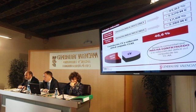 "Es evidente el esfuerzo de la Comunitat por controlar y reducir su déficit, sin mermar los servicios públicos y con un gasto eficiente en ellos" ha explicado el conseller. "Prueba de ello -ha continuado el conseller- es el hecho de que partíamos de una situación muy complicada con un 5,15% de déficit en 2011 y un 3,94% en 2012, tras los últimos ajustes realizados, porcentajes que hemos ido rebajando considerablemente hasta alcanzar el 2,33% en 2013, gracias a las medidas que hemos ido poniendo en marcha, sin traspasar en ningún caso determinadas líneas rojas".