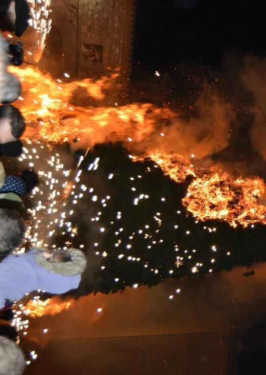 Al acabar, la encendida de la hoguera, simbolizando el fuego purificador, rodeaba de magia a grandes y pequeños con la atenta mirada de los organizadores, el grupo del Contrabando, que veían como se quemava la brosta que habían montado en la Barraca con gran esfuerzo e ilusión durante las jornadas anteriores. Mucha fue la gente que se quedó en el plaza para cenar gracias a la preparación que habían hecho los Mayorales para poder hacer torrada de carne. Mas tarde, la tradicional Ronda y Estudiantina encabezaban la bajada hasta la Cofradía donde los Mayorales ofrecían a probar el panoli que habían elaborado los días previos a la fiesta. Acababa la jornada con las tradicionales Albaes, en las que este año se habían hecho nuevas canciones y se habían recopilado algunas de las Albaes de los últimos años.