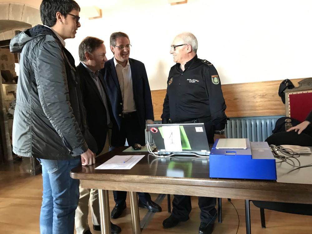 El delegado de Gobierno, Juan Carlos Moragues, ha visitado esta mañana el equipo móvil de la Policía Nacional para expedir DNI y pasaportes que hoy ha llegado a Morella, donde se ha instalado en el Ayuntamiento del municipio para atender a los vecinos de la zona que quieren renovar los documentos oficiales.