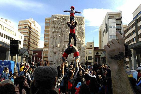 La Muixeranga instaló su propio stand y también realizó otro taller que culminó con la realización de dos figuras, el pilar de 4 y la 'torreta desplegà'. También levantaron varias figuras durante la manifestación de les Normes, hasta llegar a la Casa Matutano, donde con un pilar de 3 la niña hizo entrega de los versos que debía cantar el cantaor.
