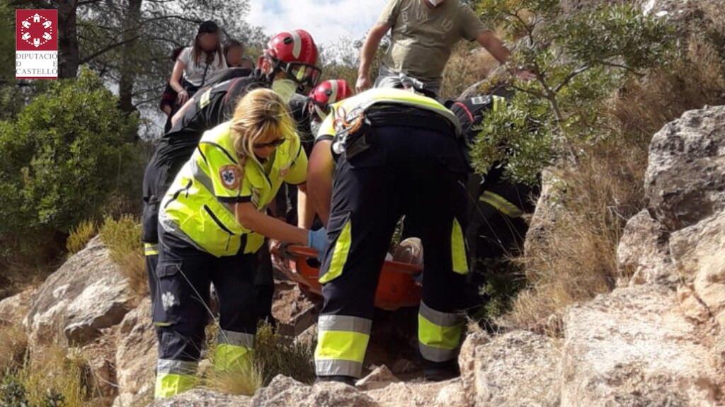 El dispositivo de Bomberos ha conseguido trasladar hasta la ambulancia a la herida con lesión en el tobillo