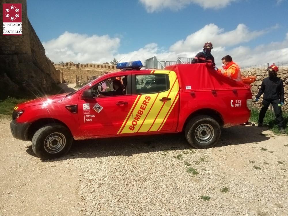 Rescatada una mujer que se ha lesionado un tobillo en el Castillo de Morella. Efectivos del parque de bomberos de Els Ports del CPBC , junto medios sanitarios, han acudido a auxiliar a la mujer que se ha lesionado el tobillo y que no podía caminar. Finalmente el servicio sanitario del Samu se ha hecho cargo de la persona herida.