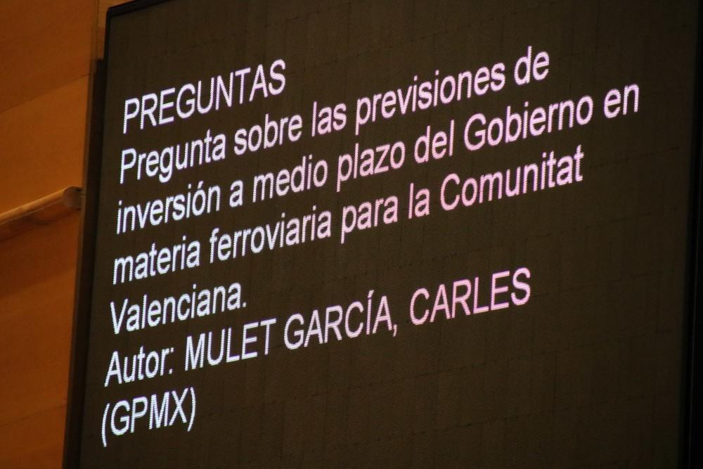 Mulet ha recordado al ministro cómo en los documentos del Corredor Mediterráneo enviado a la UE, condenan a València a convertirse en el futuro semáforo ferroviario de Europa al no preverse las inversiones necesarias en este nodo o cómo siguen sin aplicar el Plan de reordenación de la red ferroviaria de València, firmada entre Gobierno y Ayuntamiento en 2003 entre los entonces responsables del ministro Francisco Álvarez Cascos, la alcaldesa, Rita Barberá y el presidente de la Generalitat, José Luis Olivas que preveía invertir 800 millones o las demandas de Cercanías hasta Vinaròs y Tortosa, tren de la Costa, Moixent-Font de la Figuera.