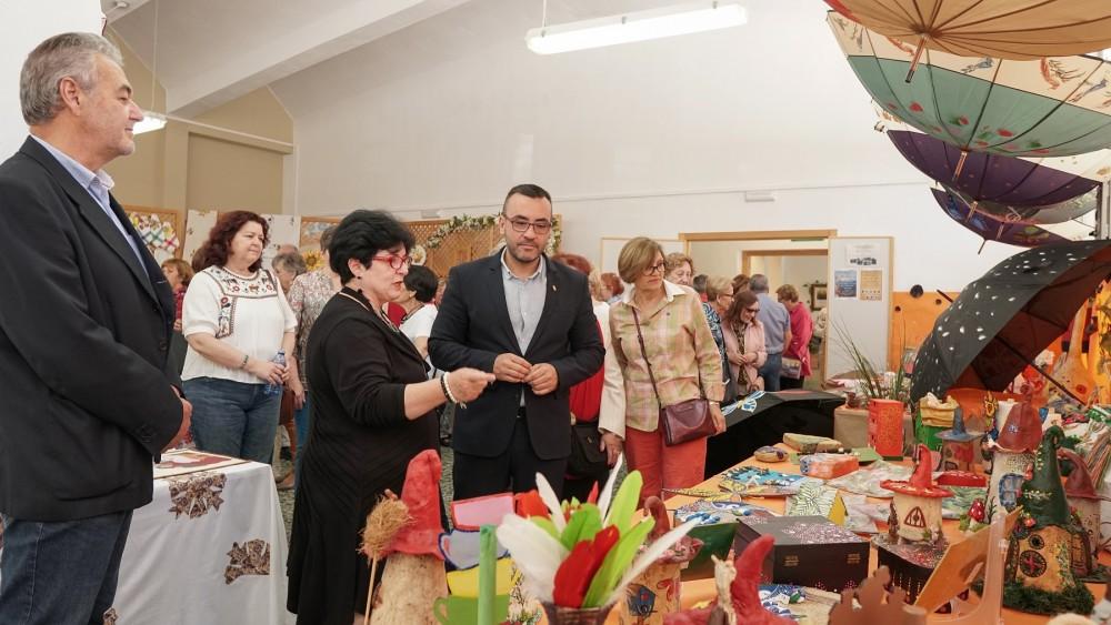 A les 11.00 l'alcalde, José Benlloch, i la regidora de Família, Rosario Royo, han acompanyat este matí els usuaris del CEAM L'Olivera en la inauguració de l'exposició dels treballs realitzats en els diferents tallers del centre de treballs manuals, informàtica, costura, memorització, patchwork, lectoescriptura, ceràmica i pintura amb tela Entre ells, un mural amb la planta històrica de la ciutat, entre altres motius decoratius, obra del taller de pintura, han conformat l’exposició.