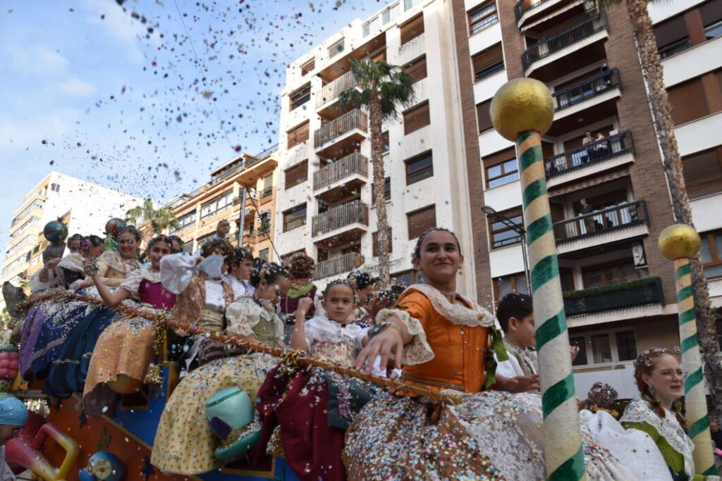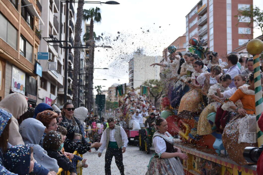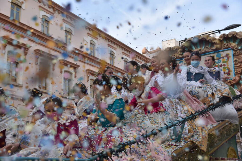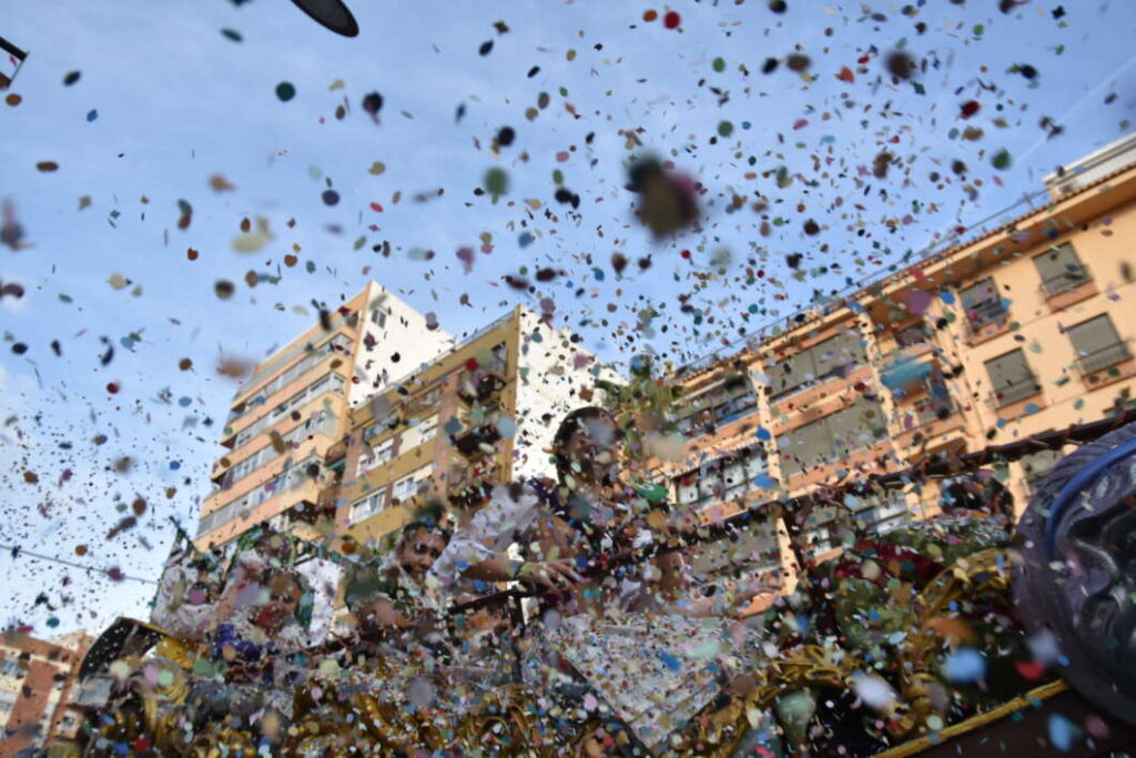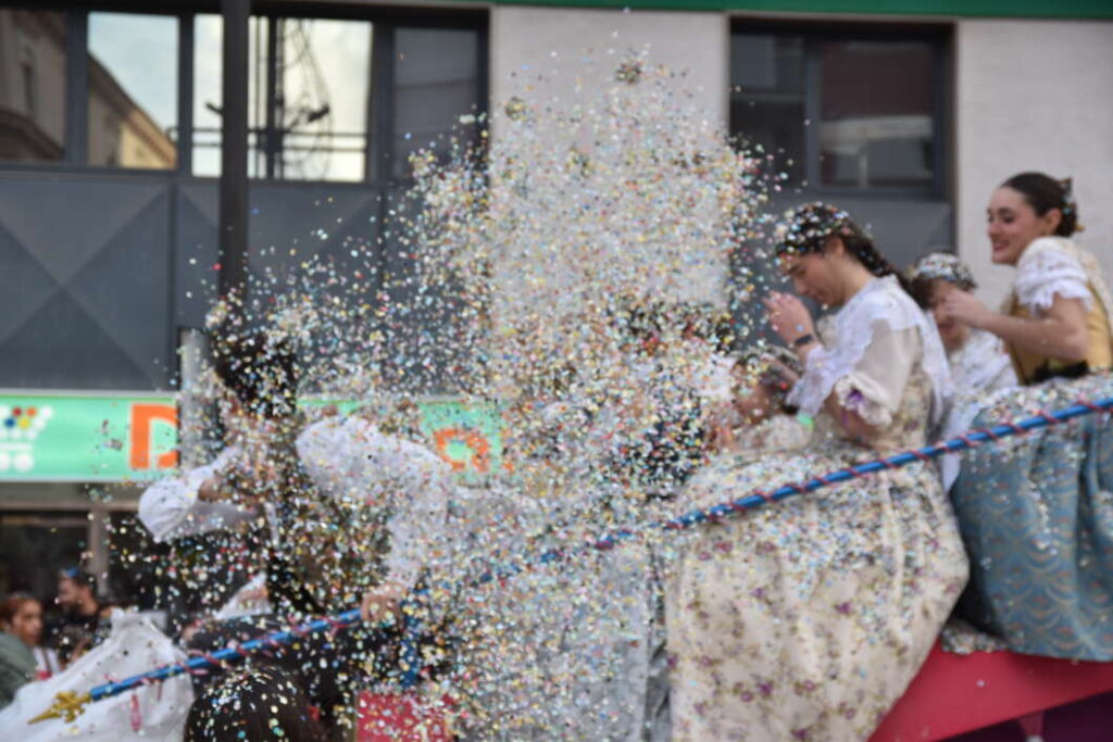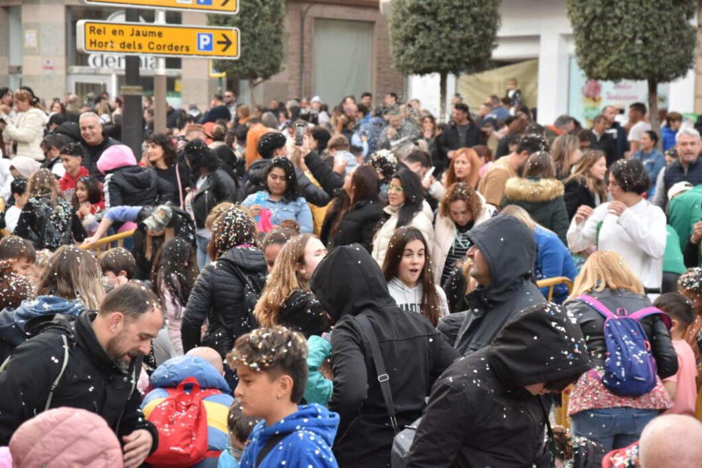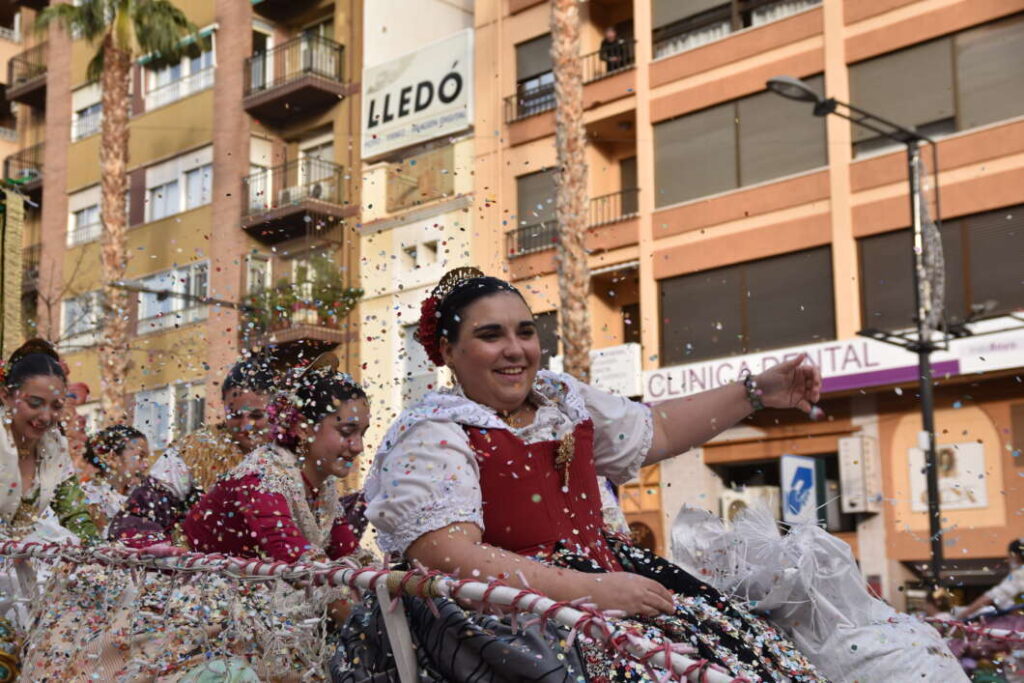 Un total de 23 carrozas han desfilado por la avenida Rey don Jaime tiñendo de color cada recoveco de este vial con más de 5.500 kilos de confeti lanzados. Las 19 gaiatas de la ciudad, junto con sus respectivas reinas y damas, Na Violant y sus damas de companya y la Federación de Collas han protagonizado este divertido pasacalle.