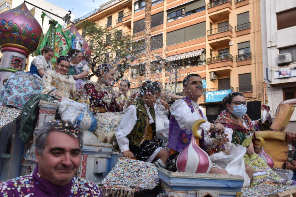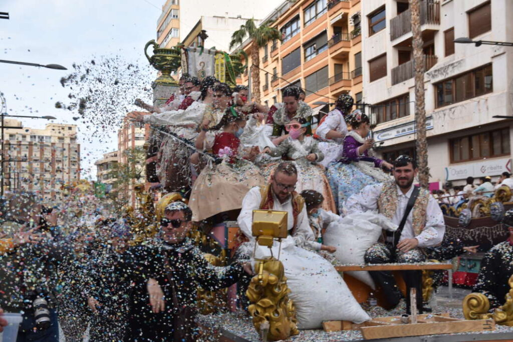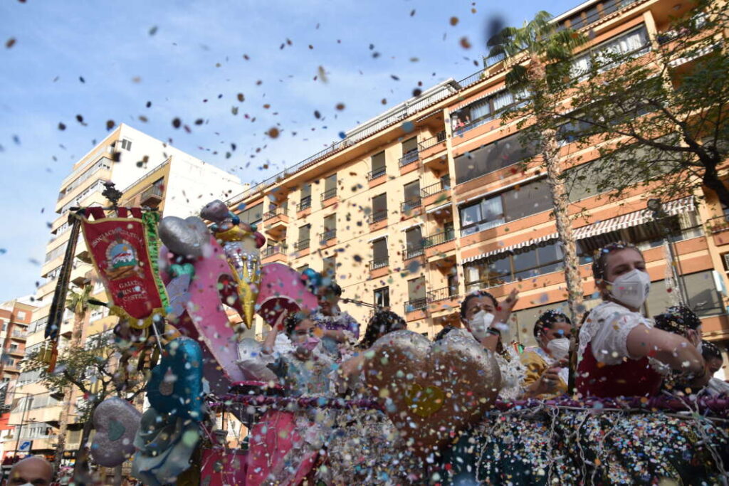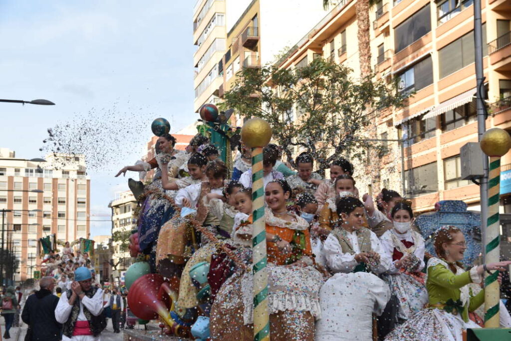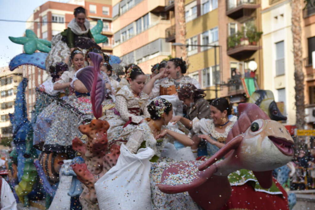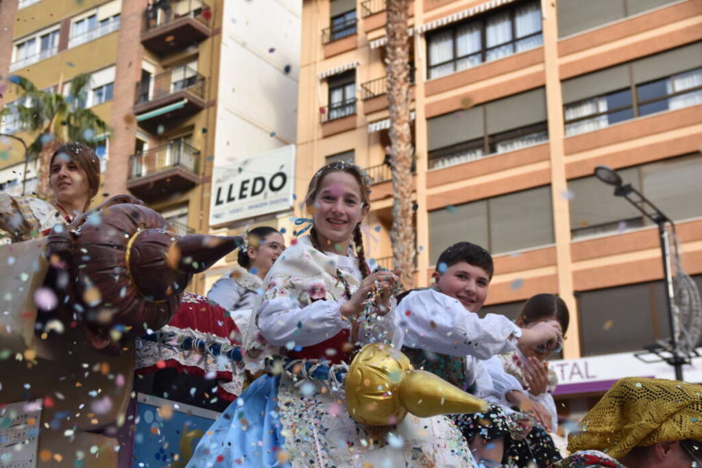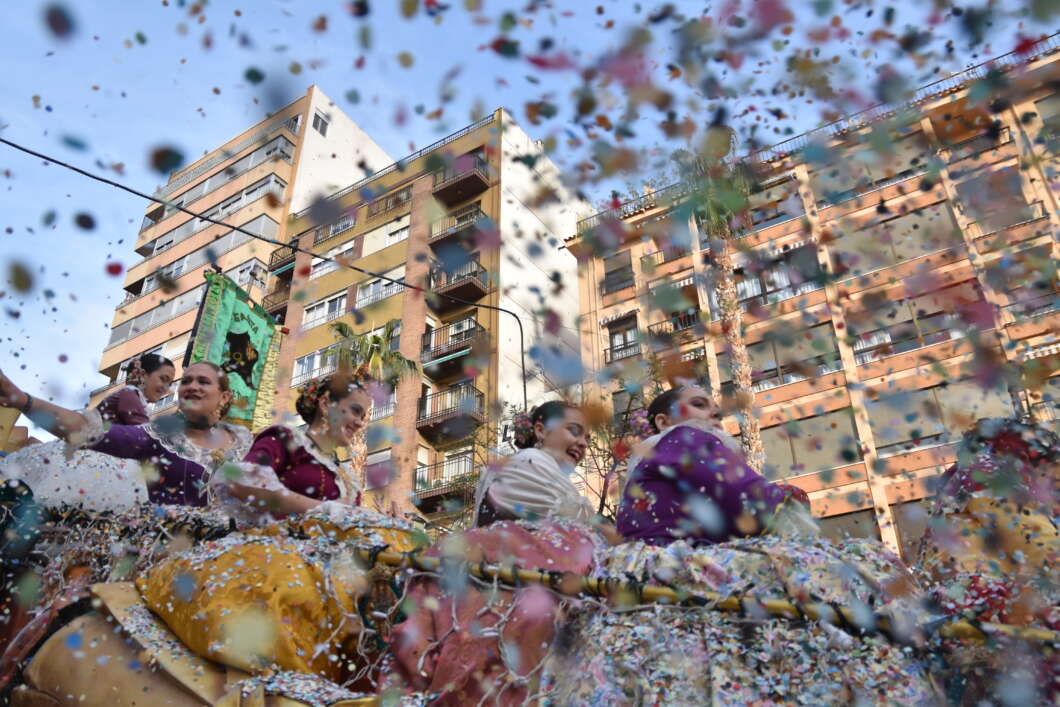 Un total de 23 carrozas han desfilado por la avenida Rey don Jaime tiñendo de color cada recoveco de este vial con más de 5.500 kilos de confeti lanzados. Las 19 gaiatas de la ciudad, junto con sus respectivas reinas y damas, Na Violant y sus damas de companya y la Federación de Collas han protagonizado este divertido pasacalle.