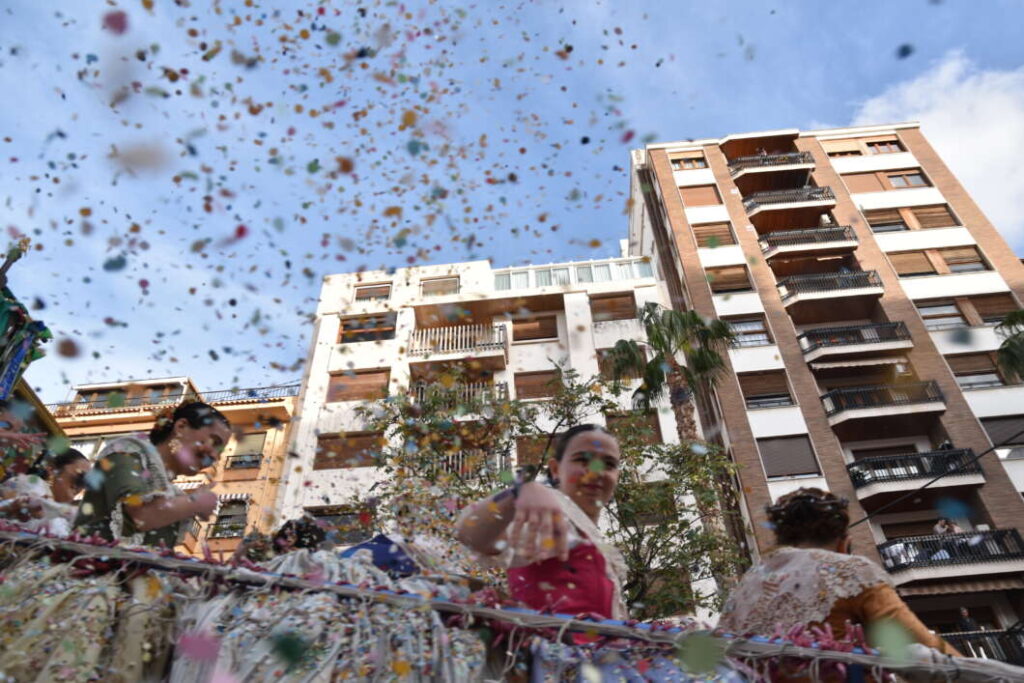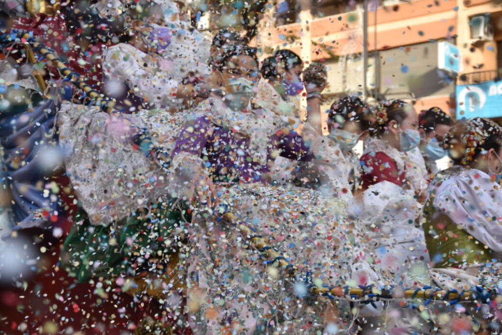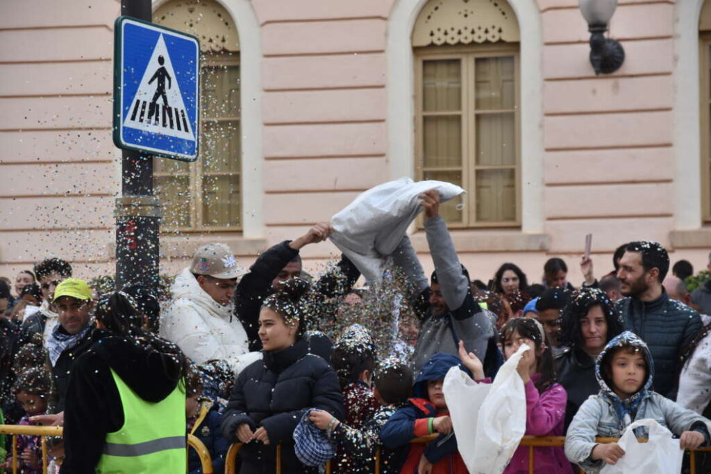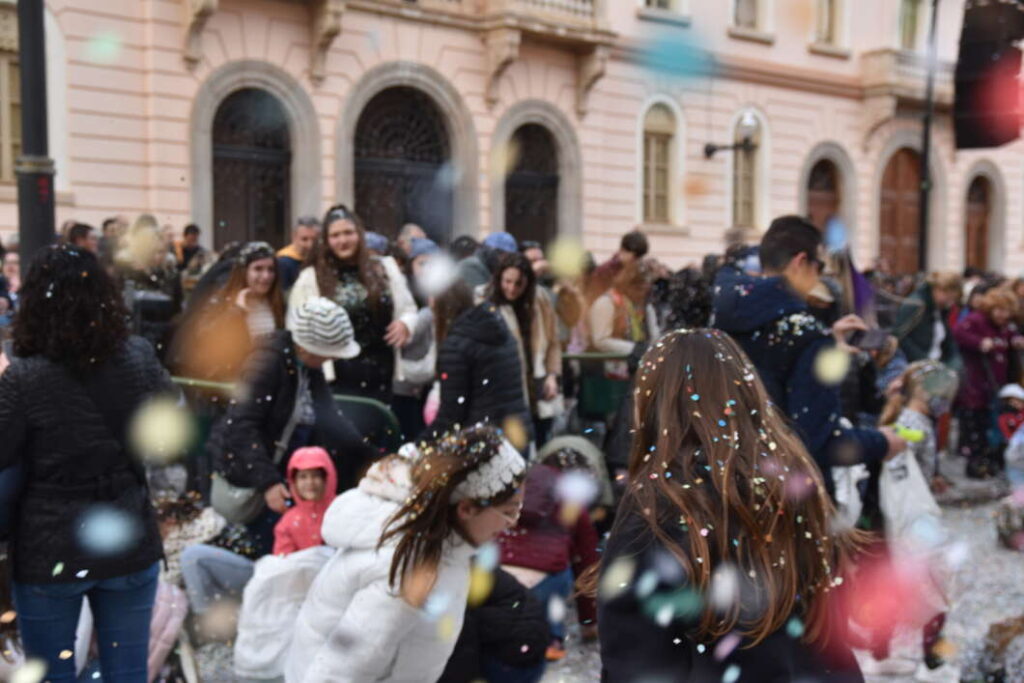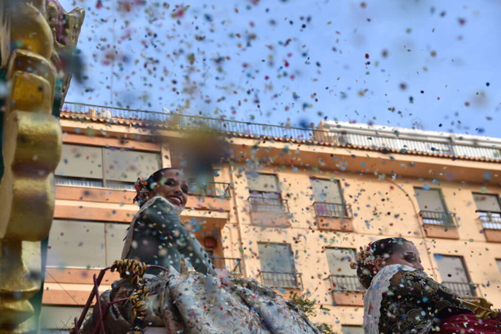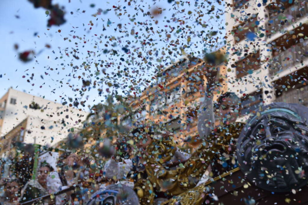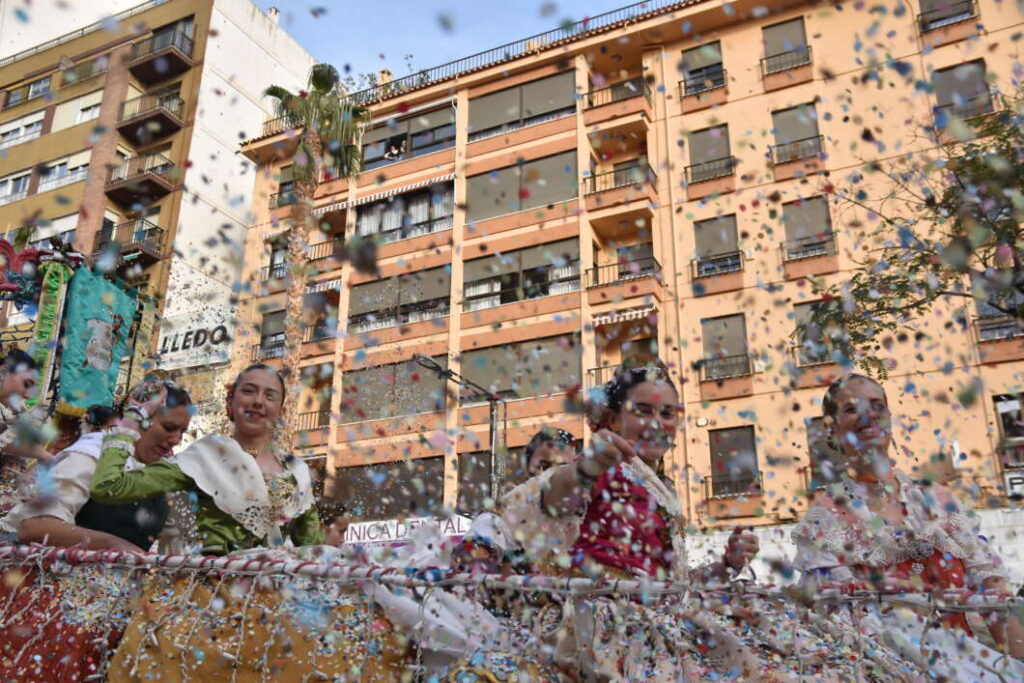 Un total de 23 carrozas han desfilado por la avenida Rey don Jaime tiñendo de color cada recoveco de este vial con más de 5.500 kilos de confeti lanzados. Las 19 gaiatas de la ciudad, junto con sus respectivas reinas y damas, Na Violant y sus damas de companya y la Federación de Collas han protagonizado este divertido pasacalle.