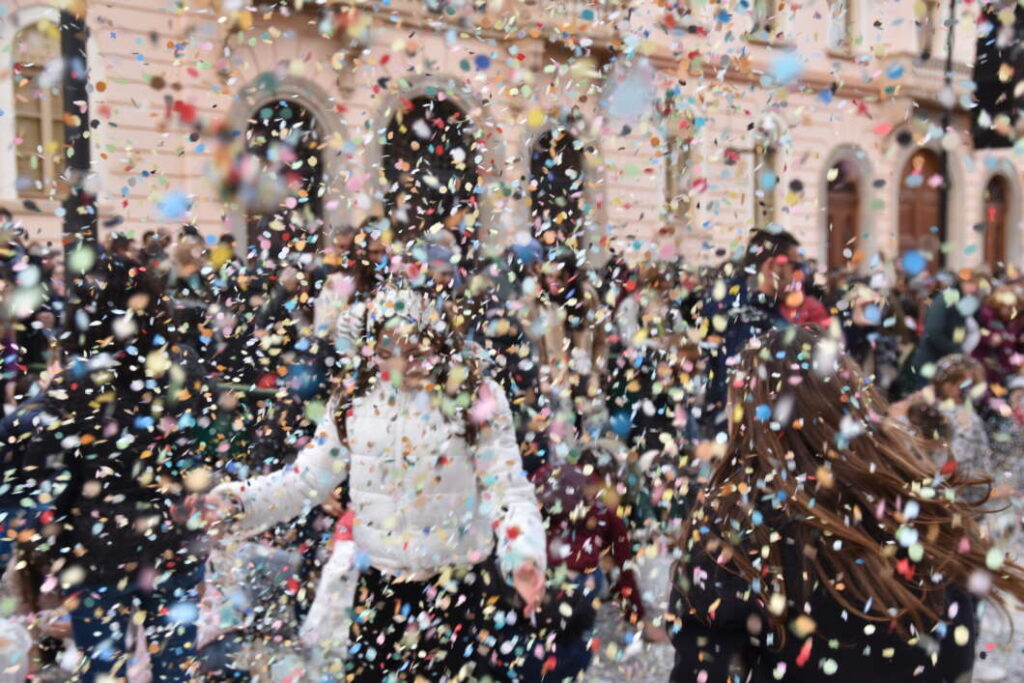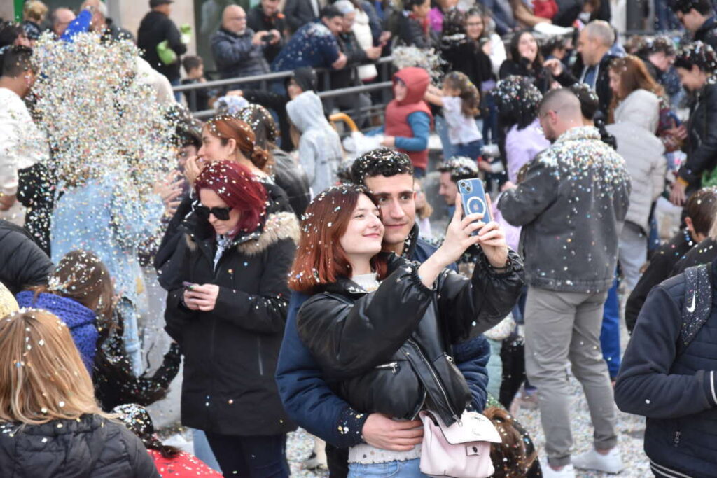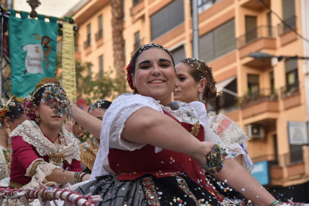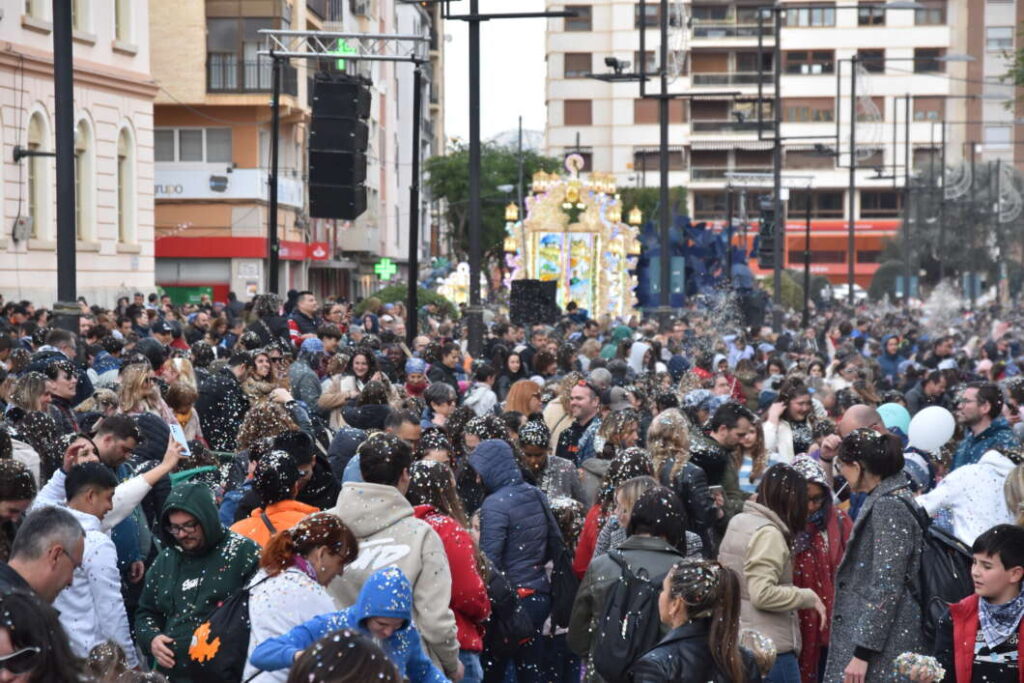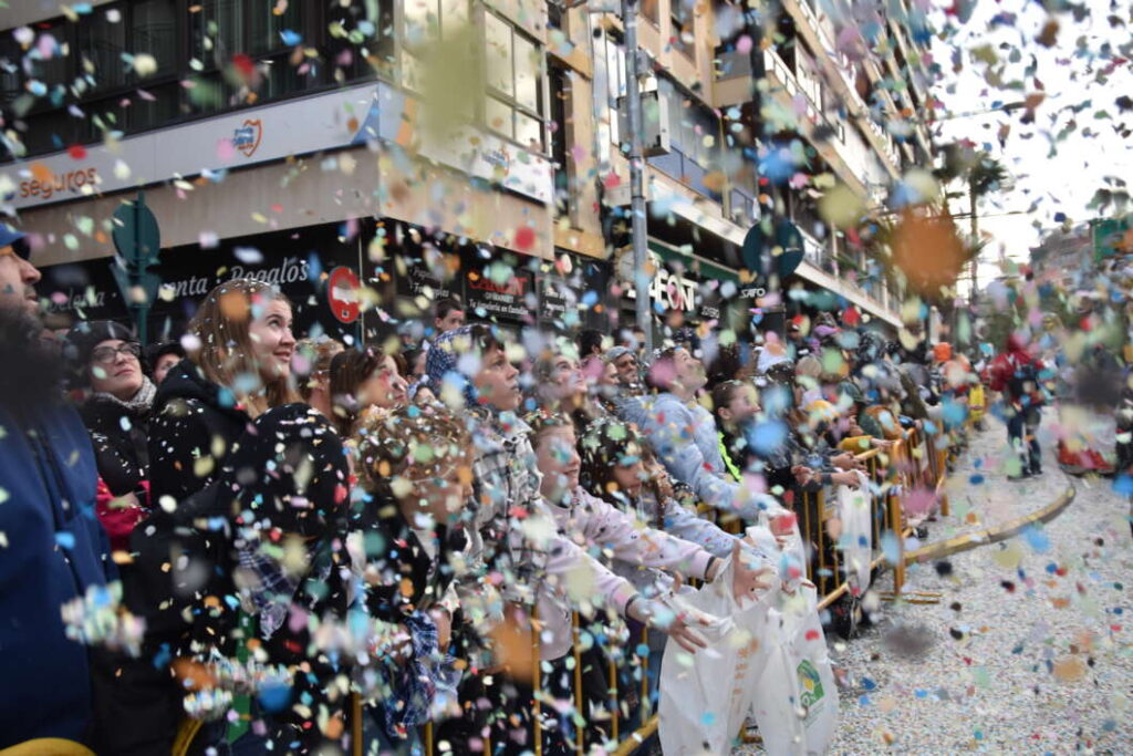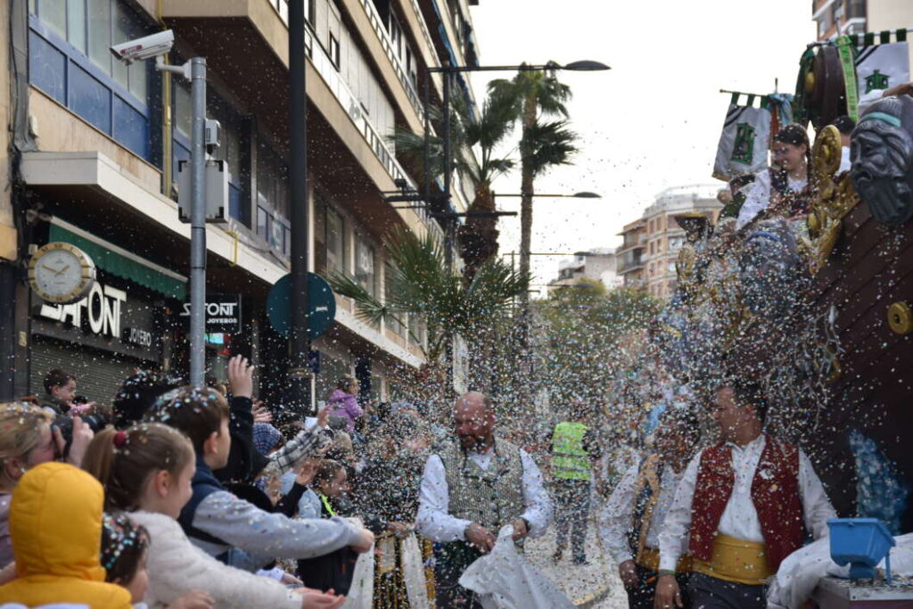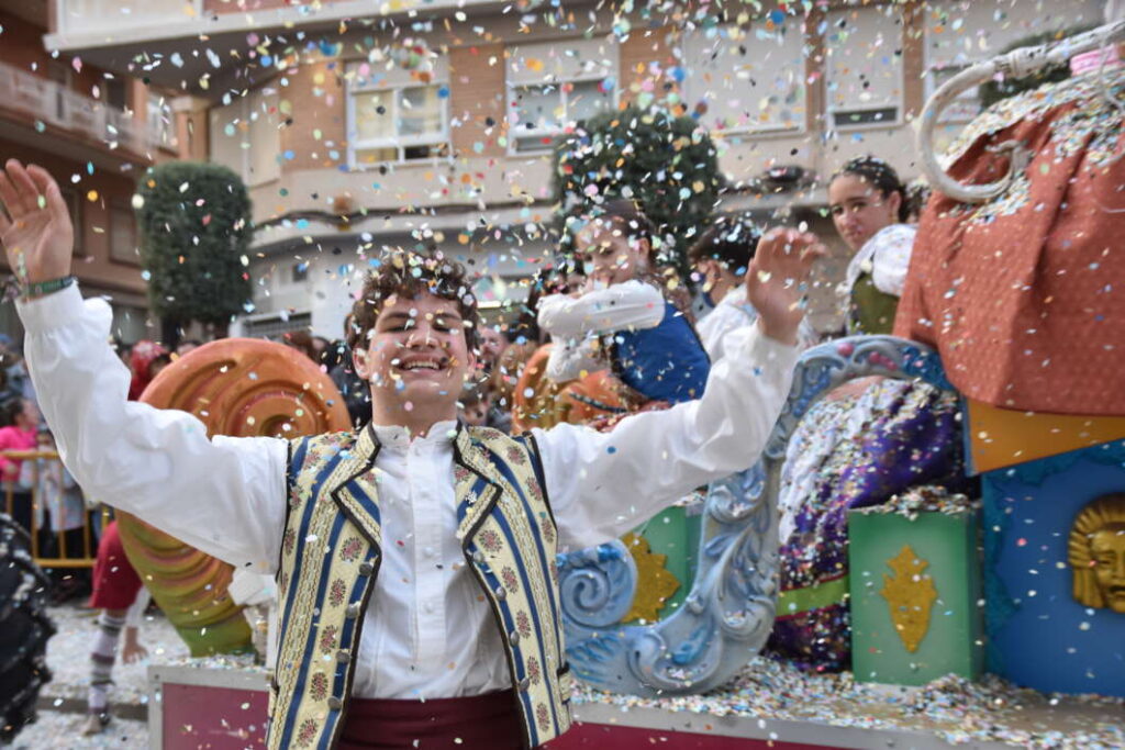 Un total de 23 carrozas han desfilado por la avenida Rey don Jaime tiñendo de color cada recoveco de este vial con más de 5.500 kilos de confeti lanzados. Las 19 gaiatas de la ciudad, junto con sus respectivas reinas y damas, Na Violant y sus damas de companya y la Federación de Collas han protagonizado este divertido pasacalle.