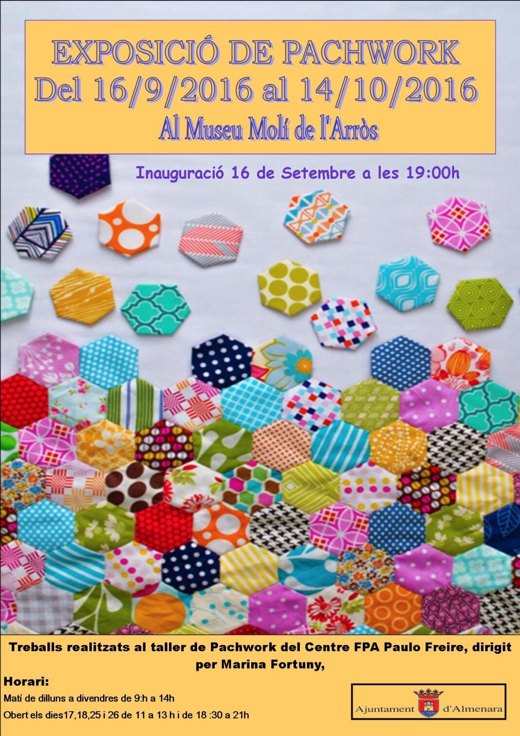Por otra parte, se podrá contemplar una segunda exposición, en la que se podrán contemplar los trabajos realizados por el alumnado del taller de pachwork del Centre de FPA Paulo Freire de Almenara y que está dirigido por Marina Fortuny.