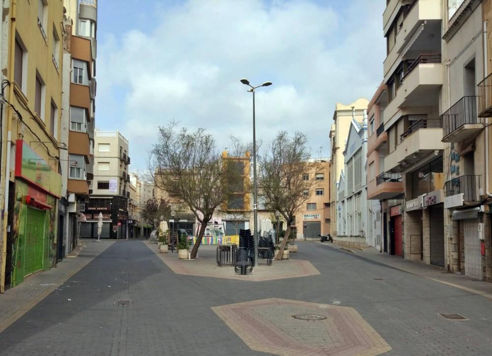 Diez y media de la mañana de hoy jueves, festividad de San José y Día del Padres, las calles de Vinaròs, como las de cualquier población de España están vacías. Un día que ha amanecido gris y donde el sol busca los resquicios que dejan las nubes para que pasen sus rayos y hacer el día más llevadero en medio de la cuarentena.