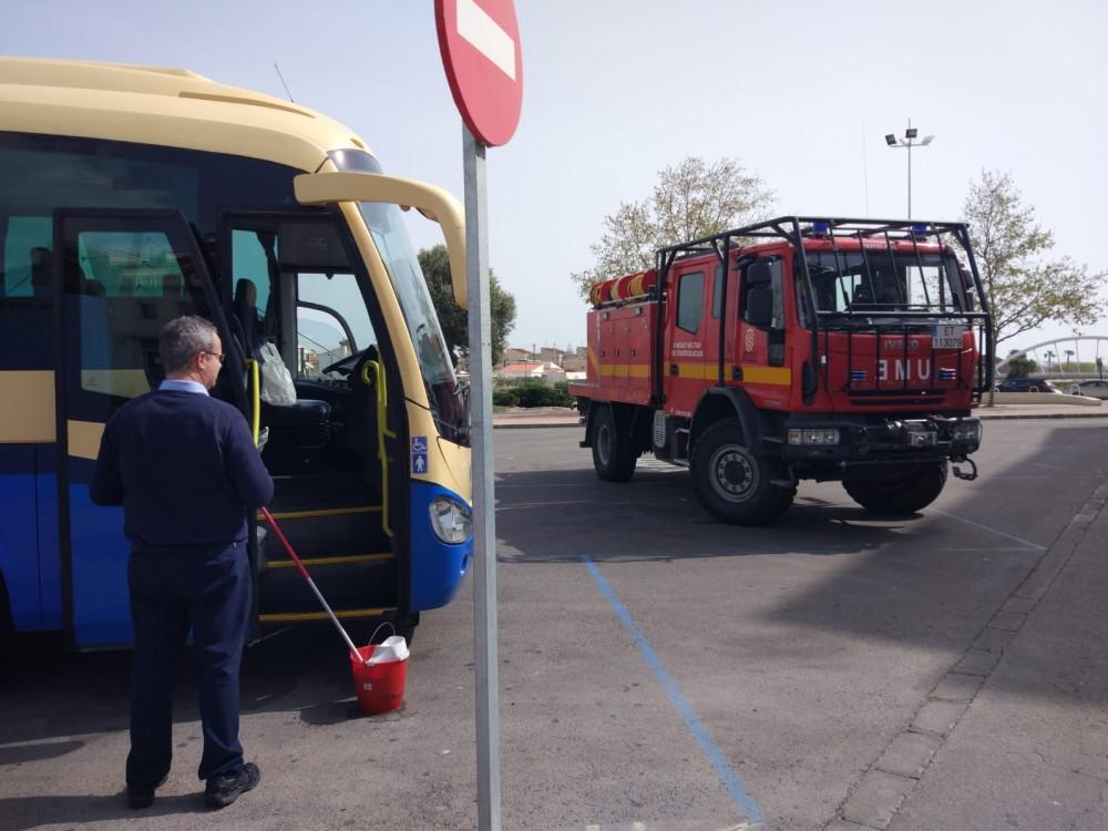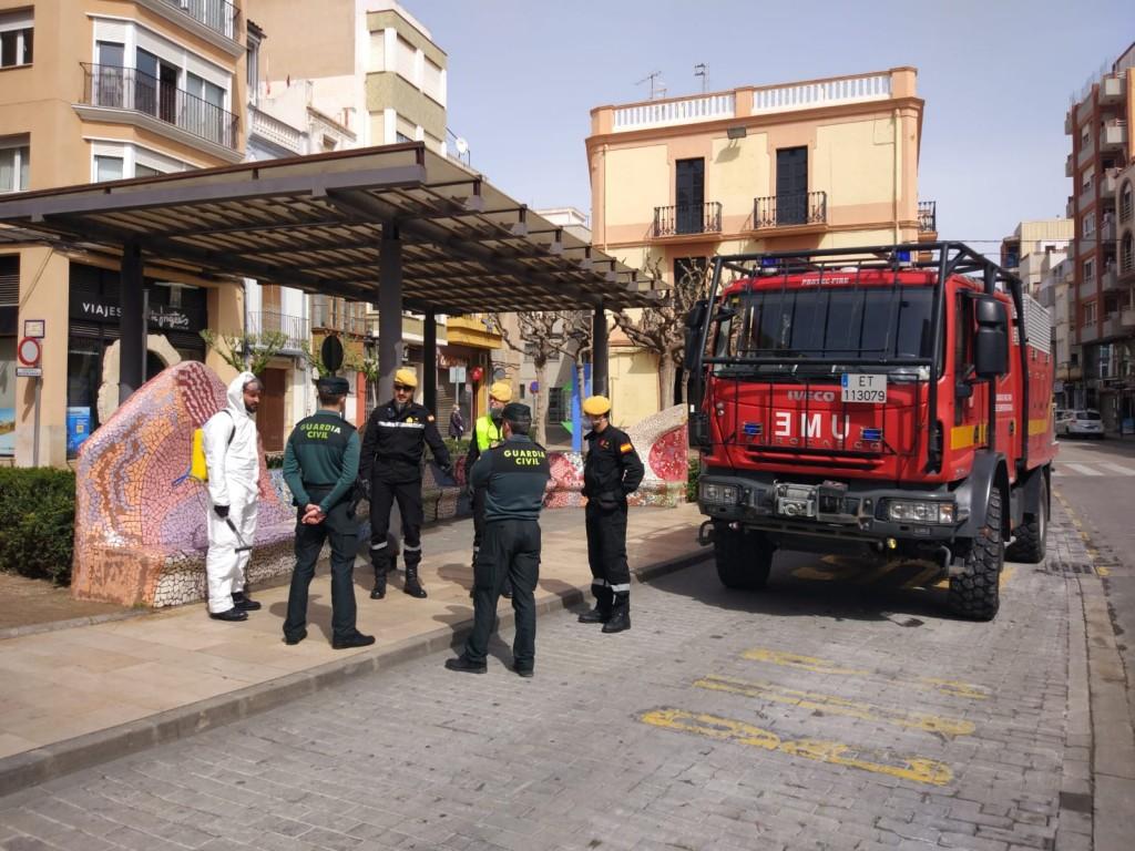La Unidad Militar de Emergencias está desinfectando en Vinaròs, como son la estación de autobús y la de tren, así como la residencia de mayores San Sebastián.