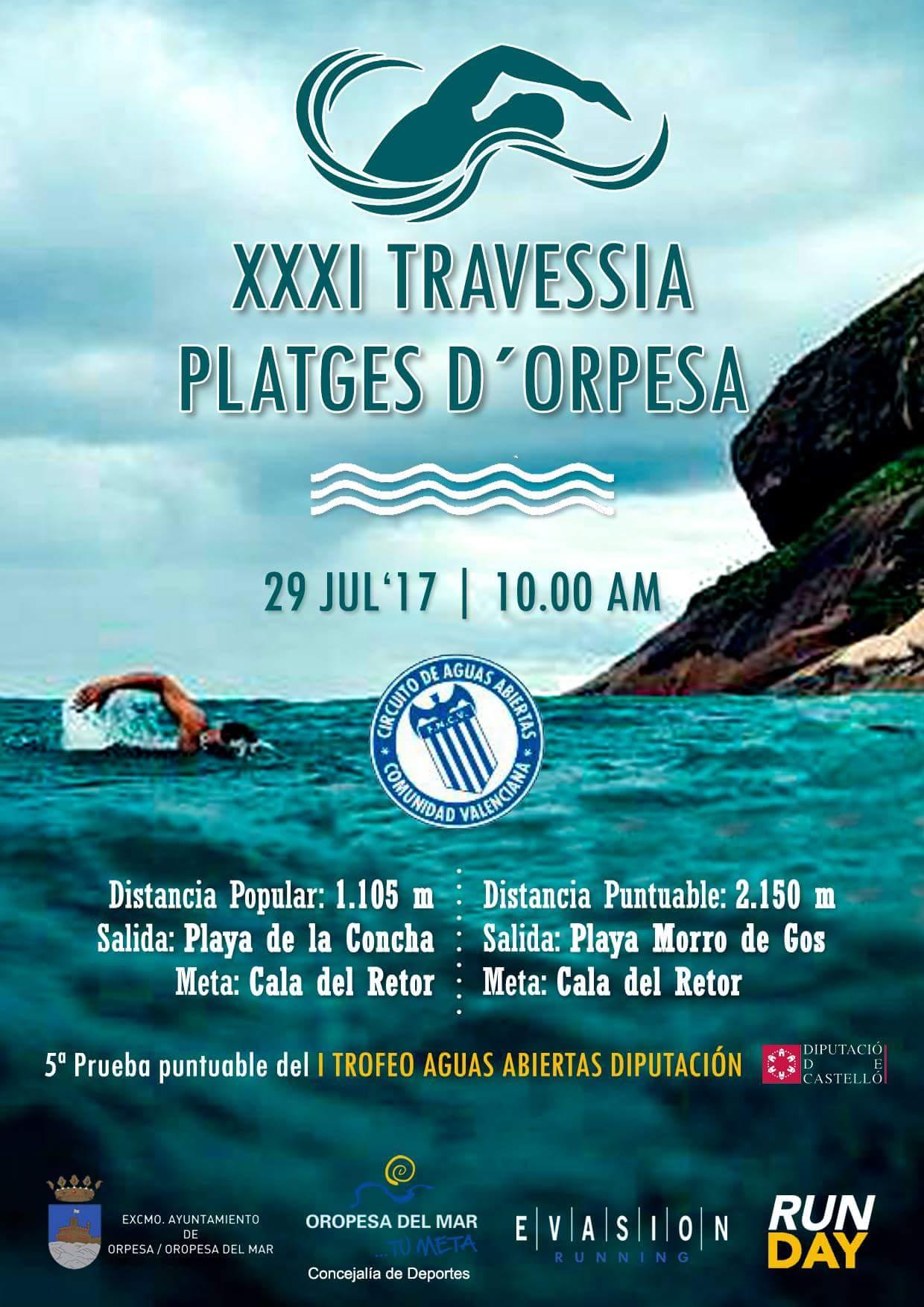 Oropesa del Mar ofrecerá el próximo 29 de julio, a partir de las 10.00 horas, la 31ª edición de la Travessia Platges d’Orpesa, una de las pruebas deportivas más esperadas y seguidas en la localidad en época veraniega. La competición consta de dos modalidades, la popular y la puntuable, que computa para el I Trofeo Aguas Abiertas Diputación de Castellón y para el XIX Circuito de Travesías de la Comunidad Valenciana.