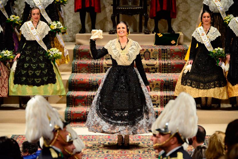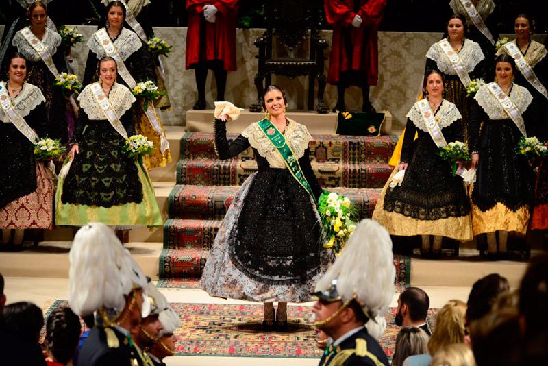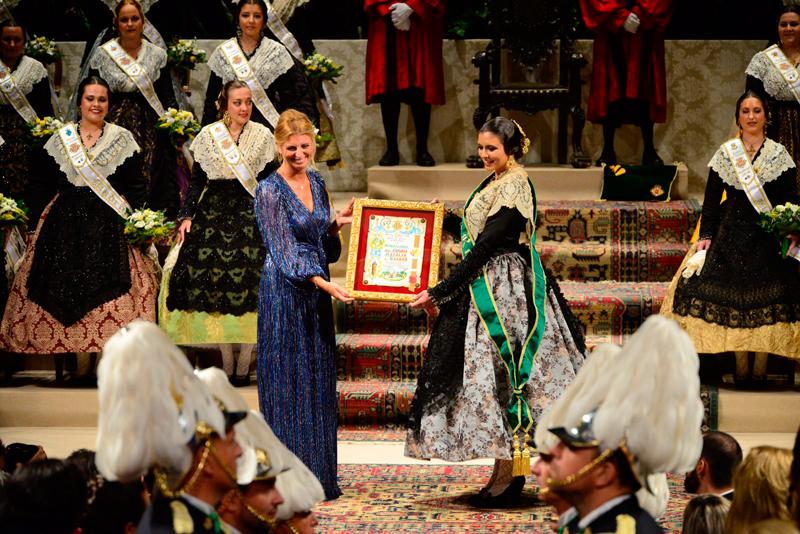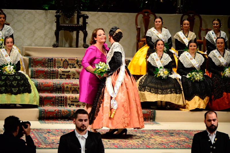 La arropaban en esta noche tan importante, las Belleas del Foc y su comisión de Fiestas 2018 de Alicante, y las reinas Falleras con la Junta Fallera de Valencia.
