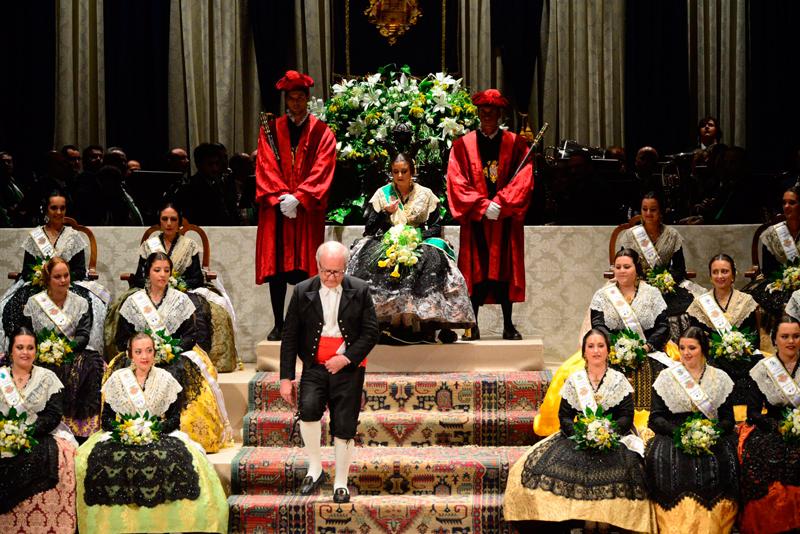 A continuación subían al escenario las damas de la ciudad: Andrea Sánchez i Verchili, Dama dels Cavallers de la Conquesta; María Iturralde Cubertorer, Ana Belén Nieto i Ramírez, Paula Garcilópez i Palau; Carmen Molina i Ramos; Iris González i Milá; y Selene Tarín i Alegre.