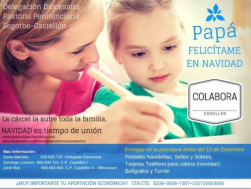 Pastoral Penitenciaria presenta su campaña de Navidad destinada a recoger material para que los presos de las dos cárceles de Castellón puedan escribir a sus familias por Navidad. Esta campaña, que lleva por lema "Papá, felicítame por Navidad", pide bolígrafos, postales, sobres, sellos, tarjetas telefónicas y turrón.