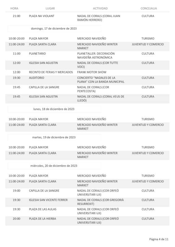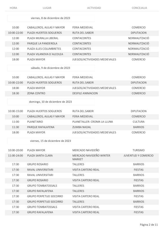 Y el medievo inundará la ciudad desde el día 5 hasta el 10 de diciembre con el Mercado Medieval. Una cita que convertirá Castelló en un auténtico festival medieval ‘non stop’ con actuaciones cada 20 minutos, en horario de 11.00 a 22.00 horas. Como novedad este año, el evento amplía sus escenarios y suma una nueva localización: la plaza Mayor. Así, la actividad se extenderá a este céntrico espacio, además de celebrarse en los habituales emplazamientos de las calles Mayor, Caballeros y la plaza de Las Aulas.