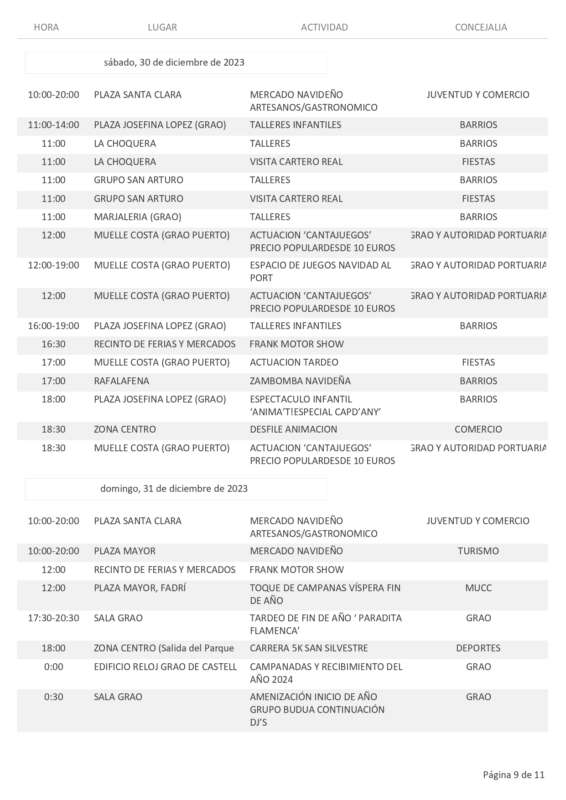 Asimismo, el público podrá disfrutar durante todo el mes de talleres y actividades para todas edades en diferentes plazas, tardeos, actuaciones musicales y espacios infantiles, con más de 40 juegos de madera y un rocódromo los días 29 y 30 de diciembre, en el muelle de costa. Y para despedir el año, la sala Grau acogerá una gran fiesta que se iniciará con un tardeo y contará con la actuación del grupo Budú.