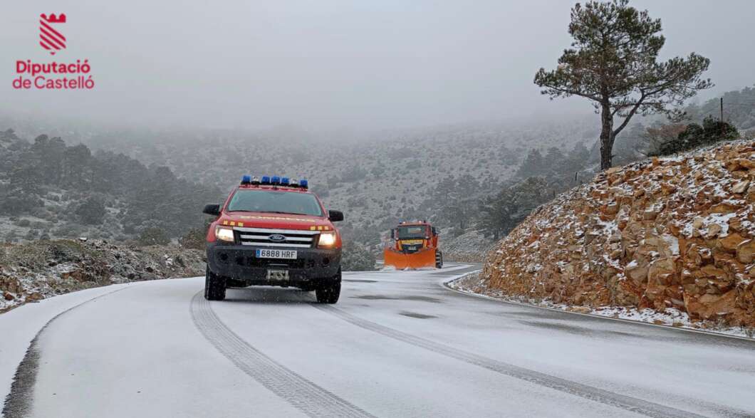Según ha informado el propio cuerpo a través de sus canales oficiales, se han desplazado dos dotaciones de bomberos, junto a dos unidades de los servicios forestales de la Generalitat Valenciana, equipadas con quitanieves y saleros, con el objetivo de mantener abiertas las vías y reducir el riesgo para la circulación.