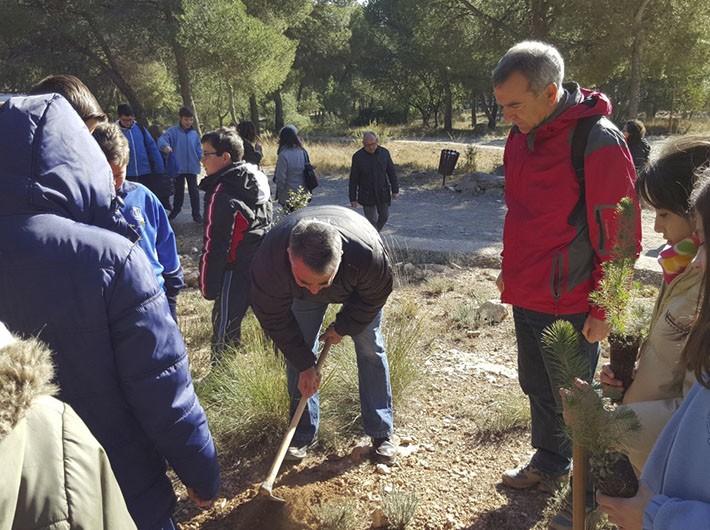 El Ayuntamiento de Segorbe ha celebrado esta mañana las actividades del Día del Árbol en el Paraje Natural de La Esperanza. Un grupo de alrededor de 120 niños de los tres colegios de Segorbe se han desplazado en autobús hasta el paraje para plantar un árbol junto a sus profesores y diferentes autoridades locales y autonómicas.