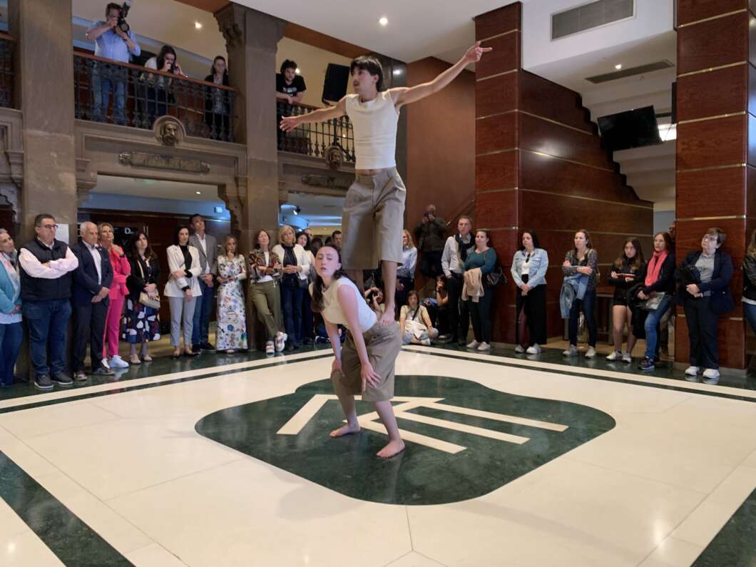 Otra de las propuestas artísticas fue el espectáculo acrobático ambientado en los años 80 de la compañía ‘Rodolant’. Esta escuela de teatro y circo, que estrenará su obra ‘Entrelazadas’ el 21 de junio en el Teatro Principal de Castellón, presentó números individuales y grupales en diferentes disciplinas como telas aéreas, aro, barra y trapecio.