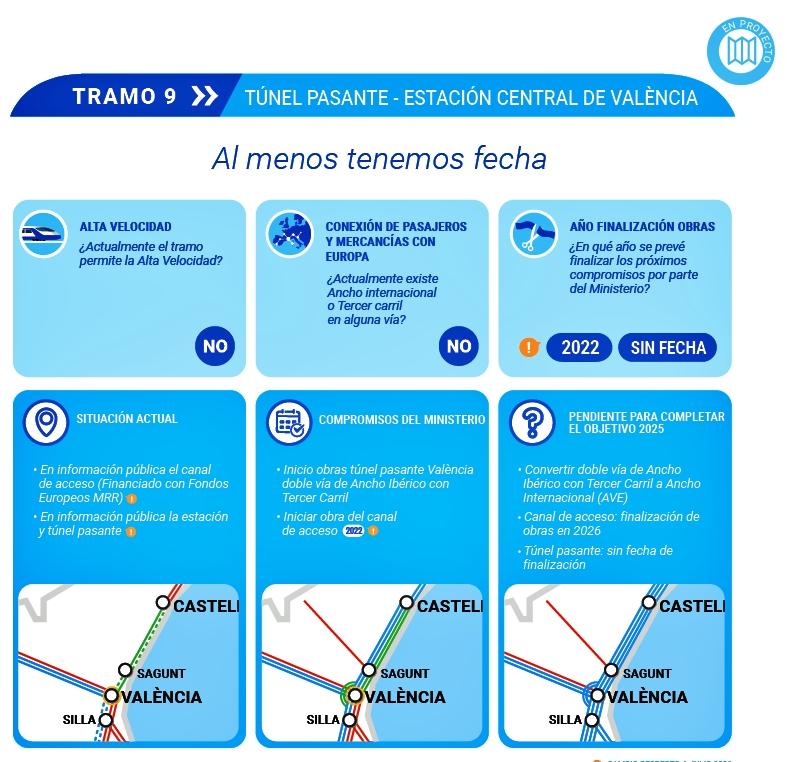 Pradas recordó que "en julio de 2017, el entonces ministro de Fomento del PP, Íñigo de la Serna, anunciaba una inversión de 1.170 millones de euros para construir un nuevo enlace del Corredor en el tramo correspondiente entre Castellón y Valencia. La obra, proyectada a finales de 2019, “es hoy uno más de los proyectos enterrados por Sánchez, los que deberían haber generado oportunidades y están olvidados en un cajón”.