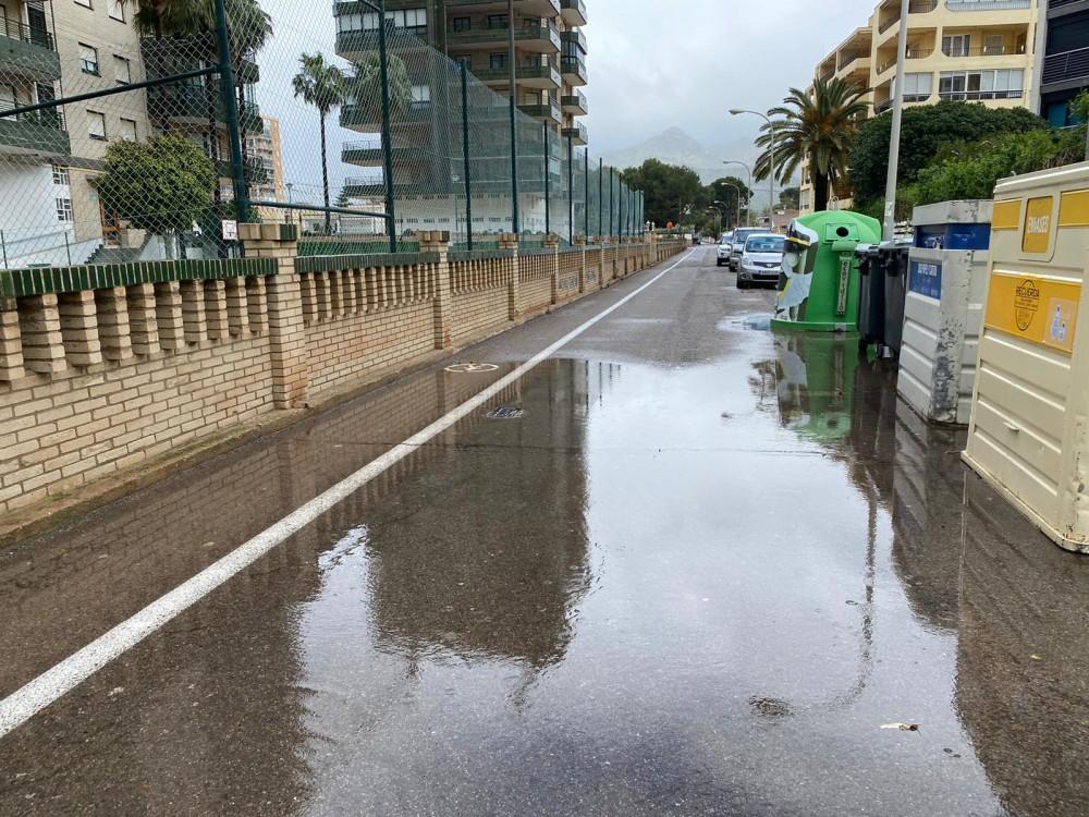 La lluvia intermitente desde ayer martes y que continúa durante la jornada de hoy ha provocado diversas incidencias en el municipio de Benicàssim. El temporal de lluvia y viento ha provocado inundaciones en varios viales como Maestro Chapí, Pintor Porcar o Doctor Fleming. Asimismo, en la calle les Sureres se ha registrado la caída de un muro que ha ocasionado la rotura en una tubería. El cierre de algunos accesos a viales y de los barrancos como el de Farja que ha registrado una creciente notable son otras de las actuaciones realizadas hasta el momento y, como ha informado la Policía Local, en estos momentos ya se han abierto todos los viales que se encontraban cerrados al tráfico, y los barrancos continúan cerrados excepto el del camino Vilaroig.