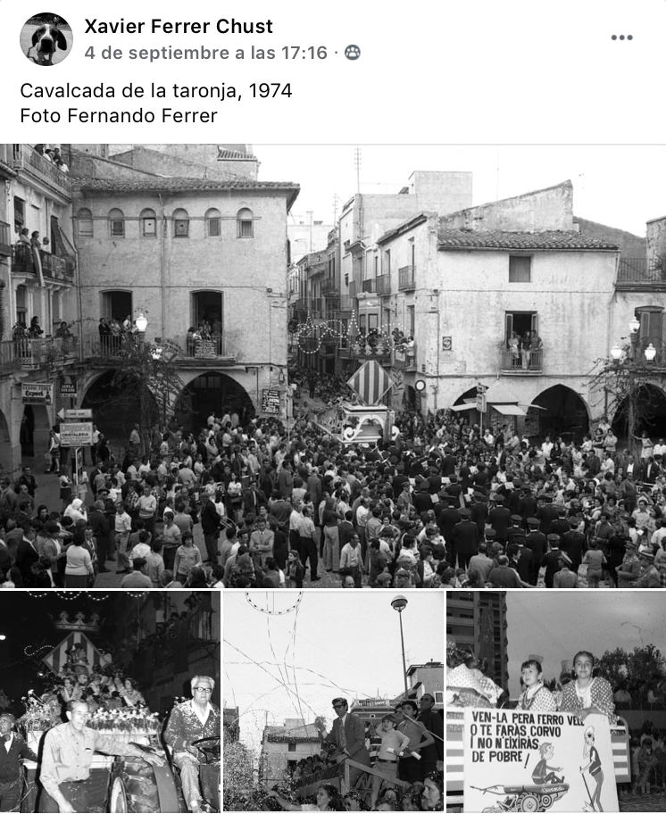 Imágenes del lechero, de ‘la cavalcada de la taronja’, la plaza del Ayuntamiento de Vila-real del cine Bahía y muchas más se pueden ver en los últimos en las redes sociales de nuestros municipios gracias a la generosidad de personas como Bautista Miguel Ballester o Xavier Ferrer Chust que las comparten con el resto de vecinos y vecinas.