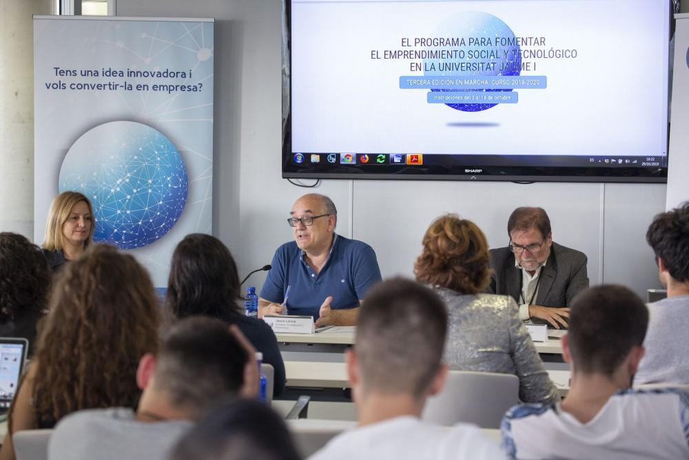 El programa d'emprenedoria social i tecnològica promogut pels vicerectorats d'Investigació i Transferència i d'Estudiantat i Compromís Social de la Universitat Jaume I arranca una nova edició. Un total de 23 idees promogudes per la comunitat universitària s'han presentat en Espaitec per a ser les protagonistes d'un programa de formació i mentorització que els ajudarà a transformar en projectes emprenedors d'impacte social, tecnològic i/o mediambiental.