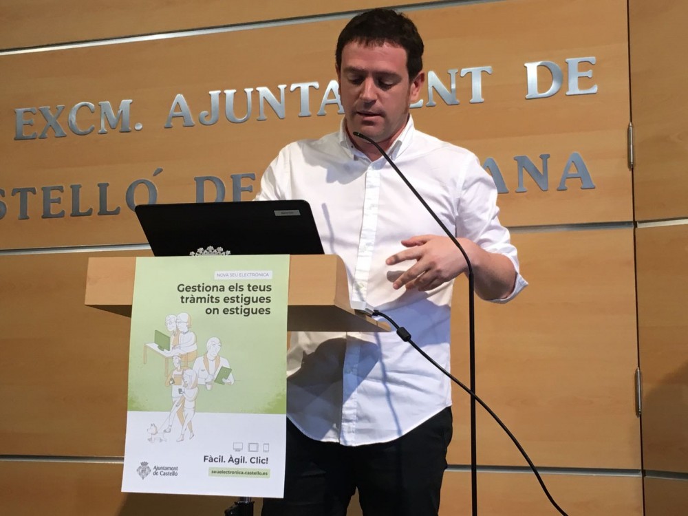 Ignasi garcia seu electronica El concejal de Modernización y Transparencia, Ignasi Garcia, ha presentado esta mañana la nueva Sede Electrónica del Ayuntamiento de Castelló. Con esta, tanto si es cualquier empresa o como particular, se pueden gestionar todos los trámites y acceder a toda la información que se necesite en cualquier momento y lugar. El edil Garcia ha explicado que forma parte de las inversiones financieramente sostenibles que se marcó el gobierno para modernizar el consistorio y a la cual “hemos dedicado cuerpo y alma porque lo que hacemos es abrir la posibilidad a que la ciudadanía se pueda relacionar electrónicamente con el Ayuntamiento”.