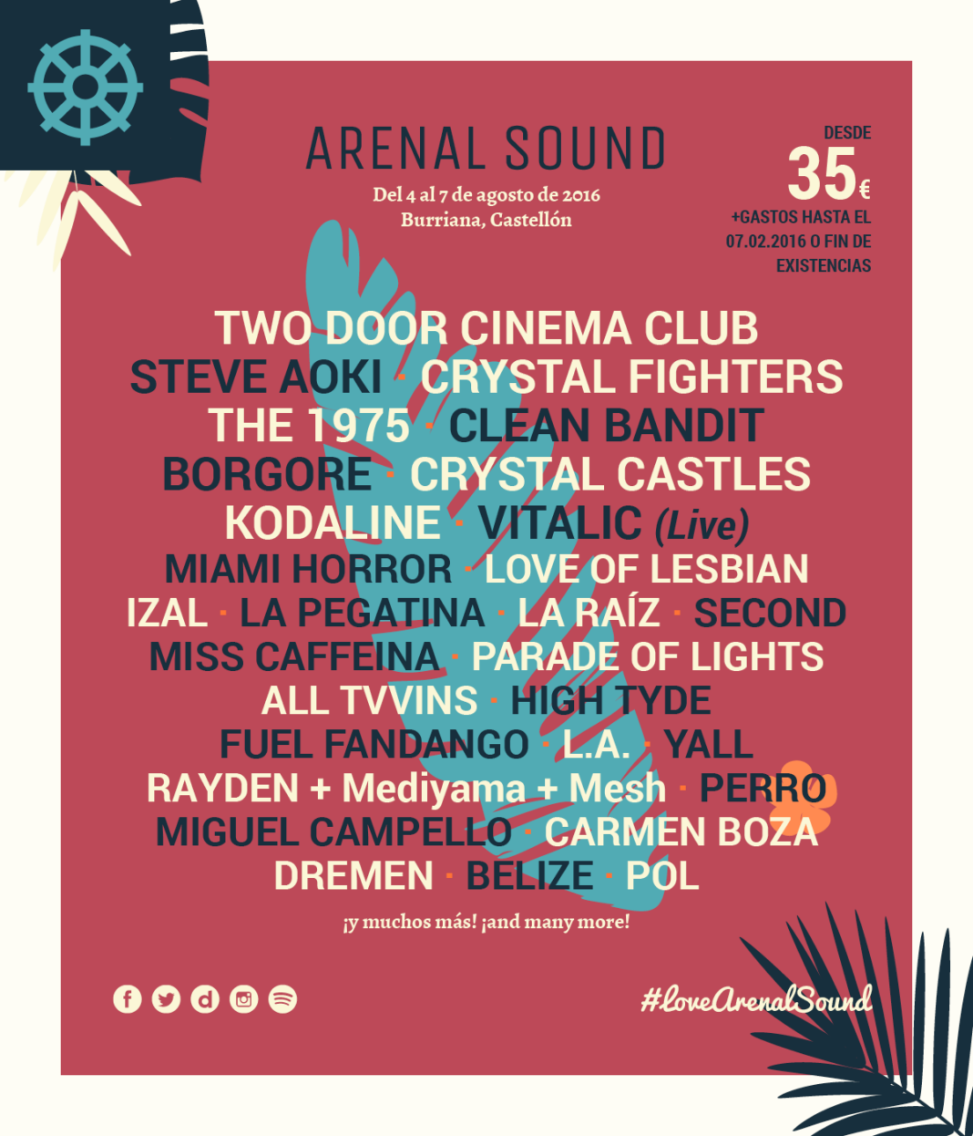 Las entradas pueden ser adquiridas desde 35€ hasta el 7 de febrero o fin de existencias en la Web Oficial www.arenalsound.com o en www.ticketea.com