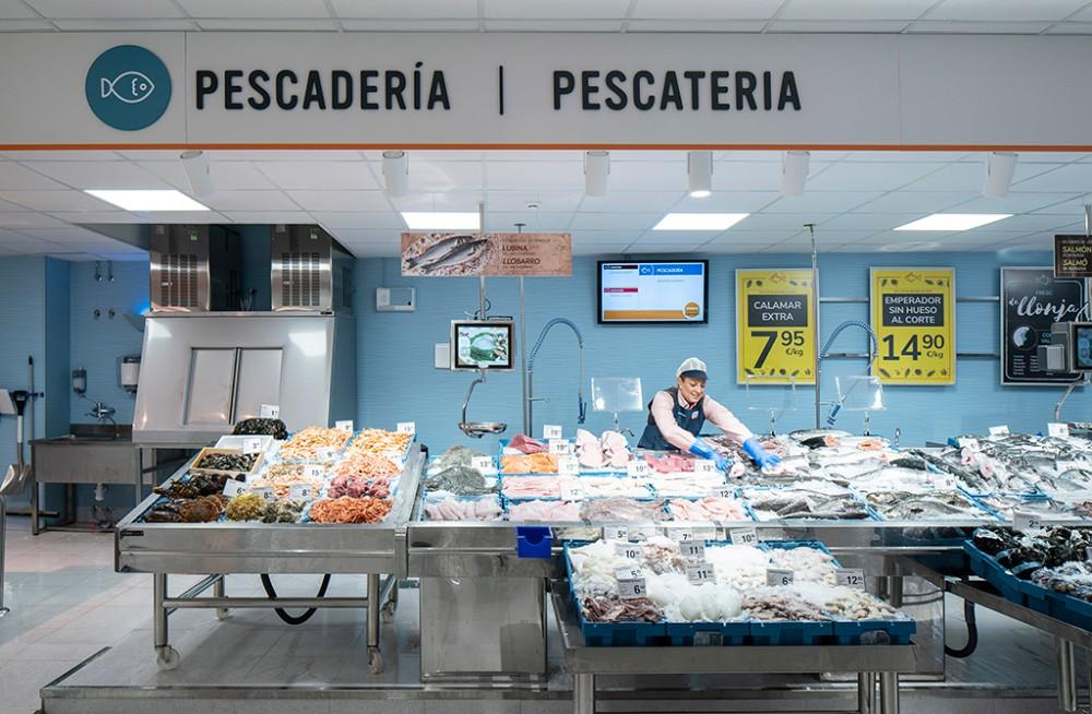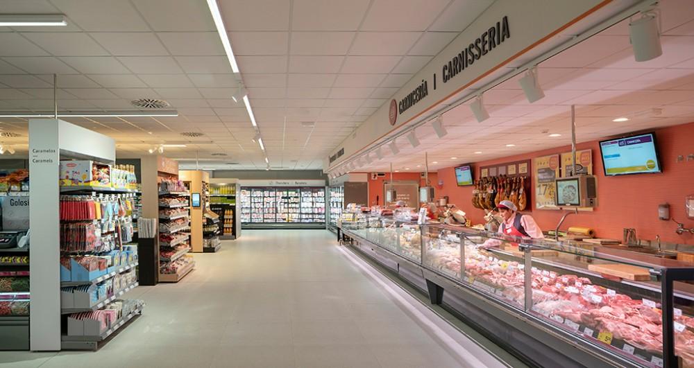 Se han priorizado las secciones de frescos, como elemento diferenciador de Consum, dando mayor protagonismo a la experiencia del cliente, mediante una nueva disposición del producto en una altura óptima. También se ha mejorado la experiencia, mitigando el sonido del pavimento mediante baldosas especiales y se ha suprimido la mayor parte de la cartelería aérea, eliminando el ‘ruido visual’, buscando una información más clara sobre el fondo blanco del mobiliario, para facilitar la comprensión del mensaje. En la ambientación predominan los tonos claros y naturales, donde el naranja corporativo de Consum se mantiene de forma sutil, pero no es el protagonista del supermercado.
