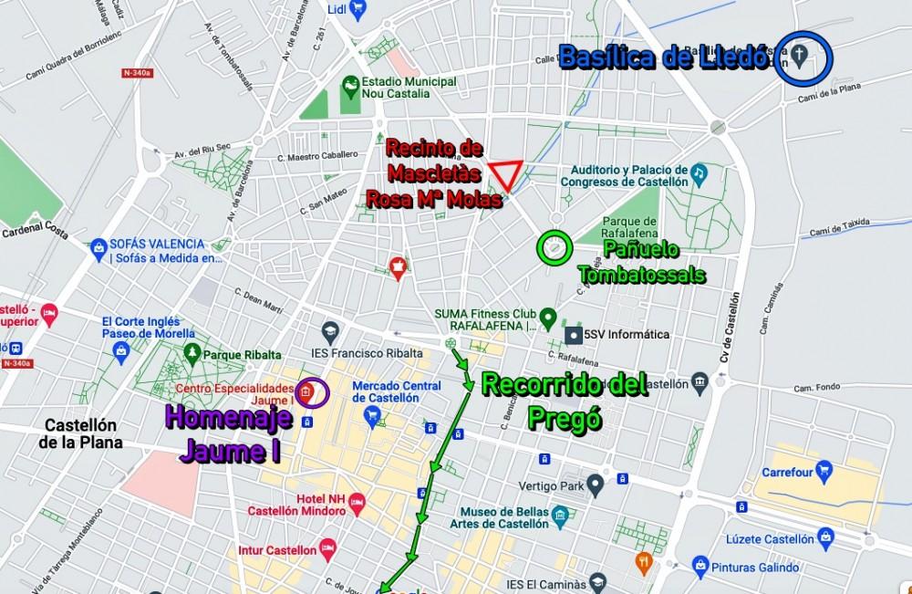 De esta manera, el nuevo itinerario saldrá desde Mª Agustina con la calle Gobernador, y pasará por la plaza Borrull, Guitarrista Tárrega, plaza Fadrell y avenida Casalduch hasta la esquina con la avenida Burriana. En este punto, finalizará el desfile. En total, un recorrido de casi 1,5 kilómetros.
