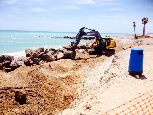 Costas está adecuando las playas de Nules desde ayer, cumpliendo así con el compromiso adquirido con el Ayuntamiento de la localidad a principios de año, para mejorar las zonas más afectadas por los diferentes temporales que han afectado este invierno al litoral de este municipio. En concreto la actuación está consistiendo en la recolocación de rocas y la adecuación de los tramos de playa que estaban más seriamente deteriorados por el fuerte oleaje.