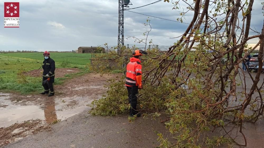 El Consorcio Provincial de Bomberos de Castellón ha notificado la movilización de un equipo a revisión de un andamio en la fachada exterior de un edificio de Moncofa y la retirada de la rama de un árbol caífa tras la tormenta.