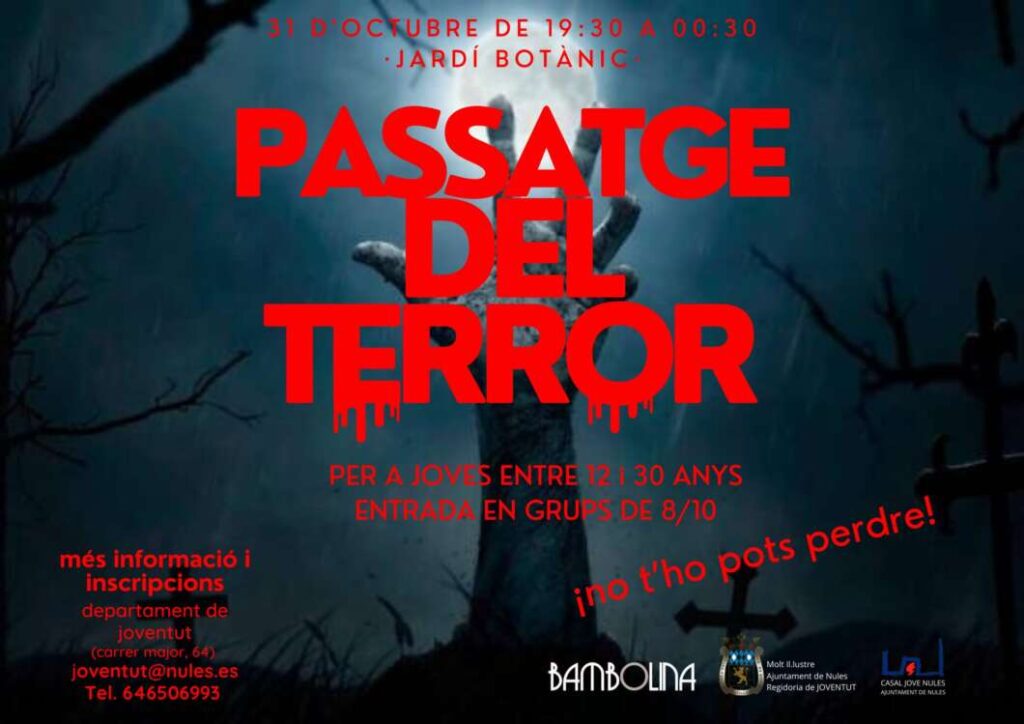 De modo que, desde la Concejalía de Juventud del Ayuntamiento de Nules se ha organizado una actividad abierta y gratuita para los jóvenes de 12 a 30 años, los cuales podrán participar del Passatge del Terror que tendrá lugar en el jardín botánico en horario de 19:30 a 00:30 horas.
