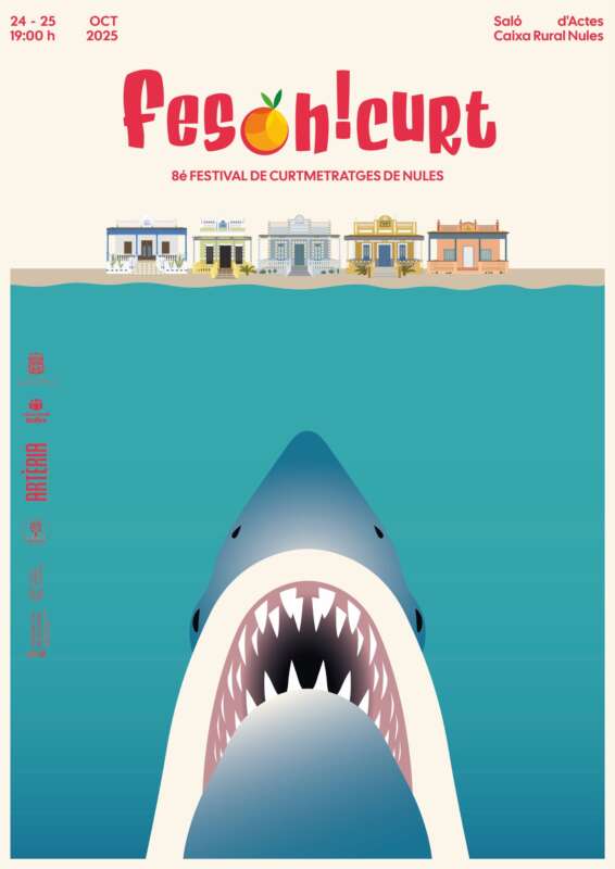Amb tot, l’acte també ha servit per a descobrir el cartell oficial del certamen, dissenyat per Àngela Moya. La imatge ret homenatge als 50 anys de Tiburón i converteix el tauró en una metàfora sobre la necessitat de preservar Les Casetes de la mar de Nules, un símbol del patrimoni i la identitat local.