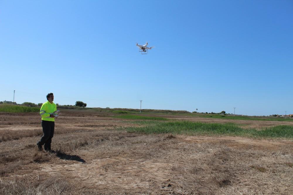 Al llarg d’aquest matí professionals especialitzats de l’empresa Lokímica han estat realitzant inspeccions amb drons des de la finca El Pou per a localitzar focus de mosquits i tractar zones de difícil accés.